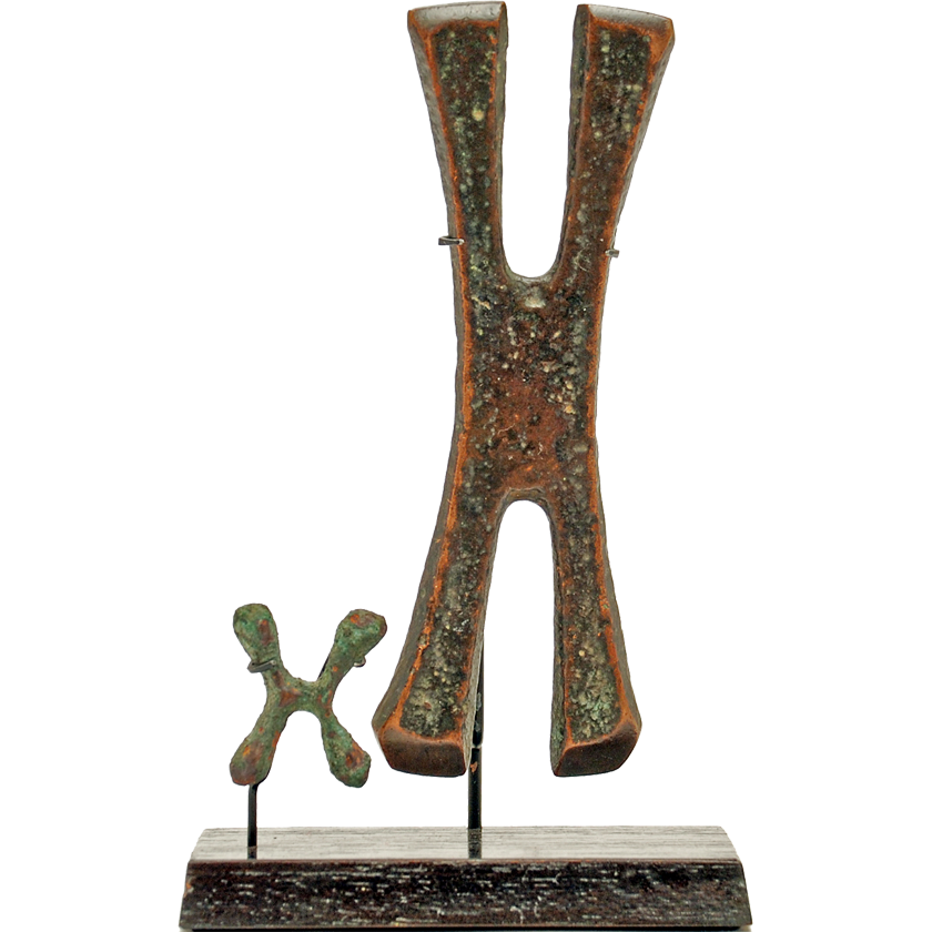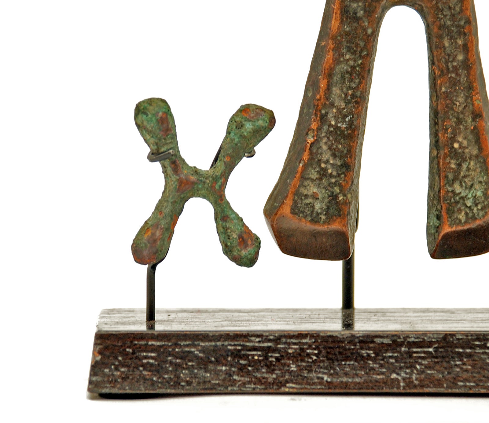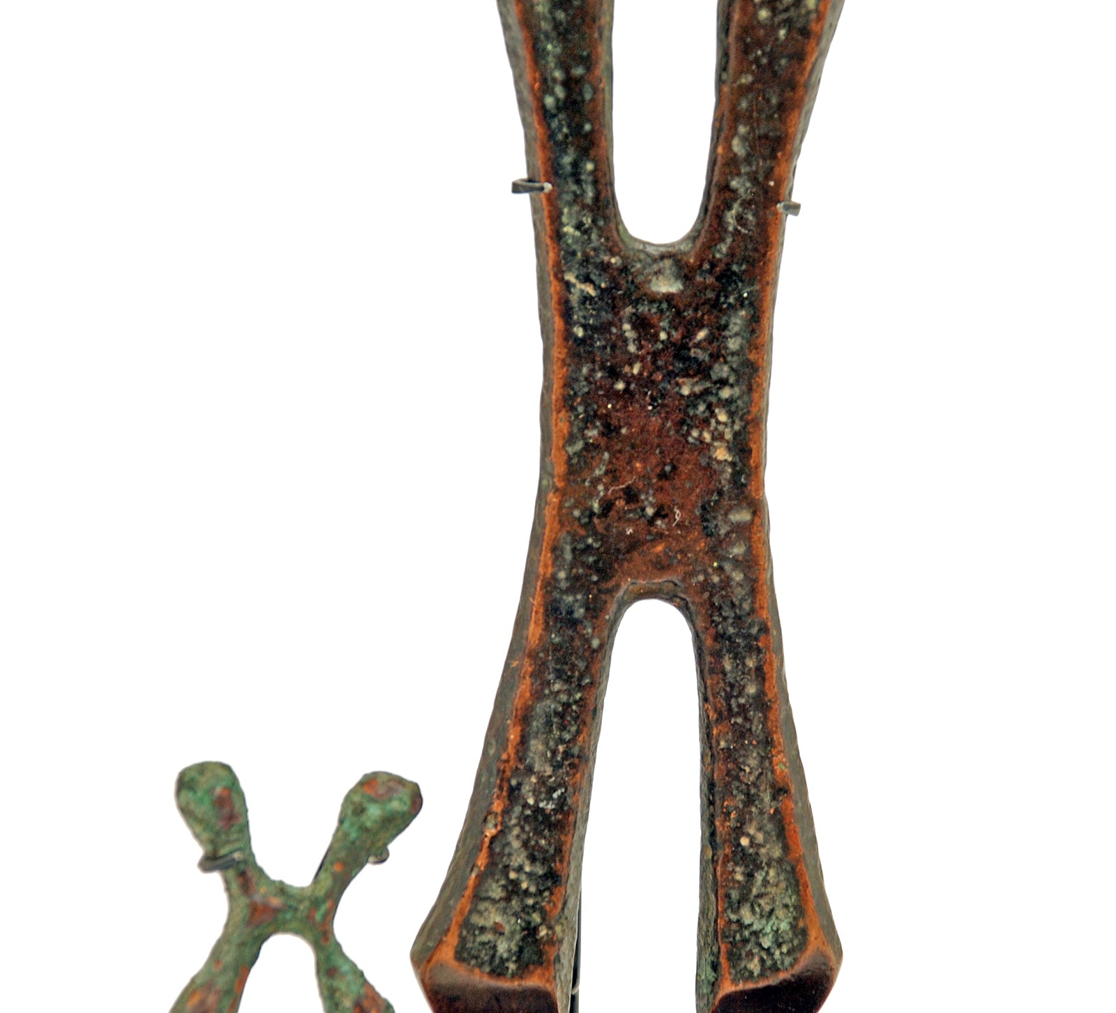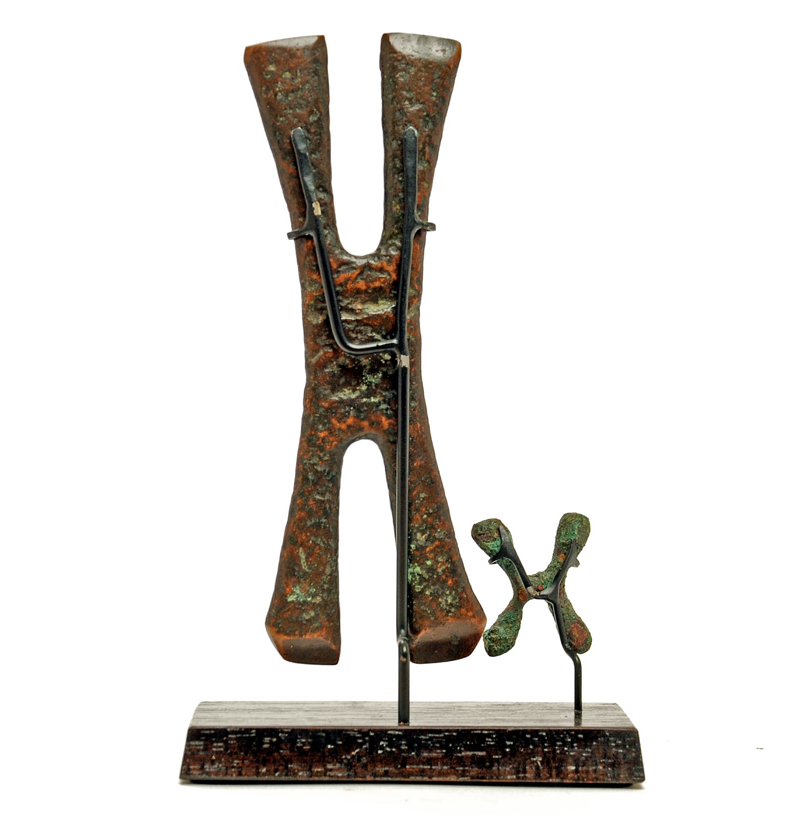 Late 18th / early 19th century Kuba currencies displayed together on a single stand. Democratic Republic of Congo.