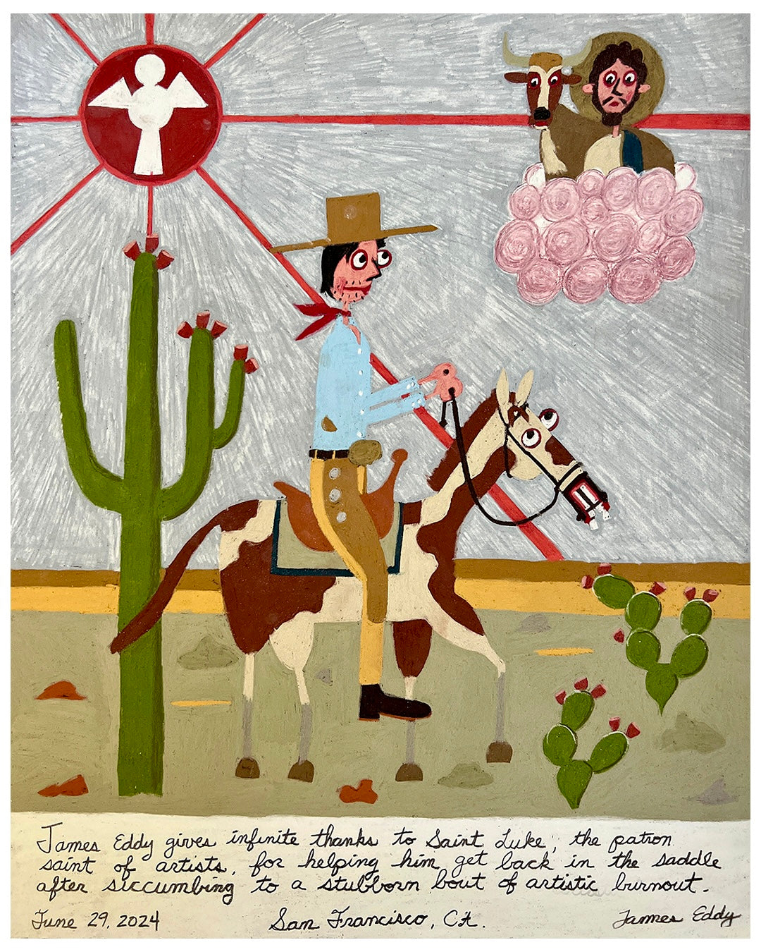 James Eddy gives infinite thanks to Saint Luke, the patron saint of artists, for helping him get back in the saddle after succumbing to a stubborn bout of artistic burnout.