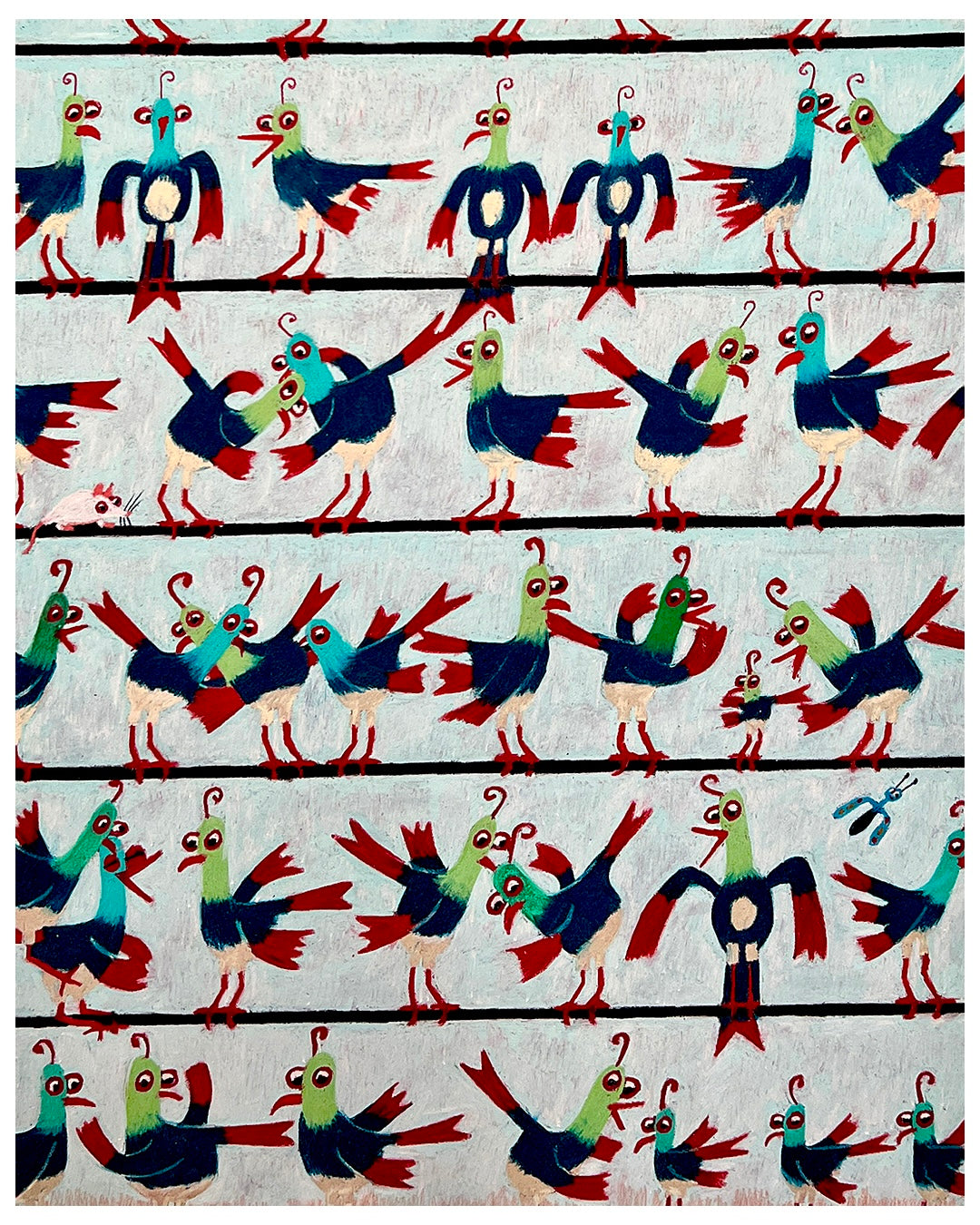 Soft pastel and pastel colored pencil on industrial grade sanded paper.