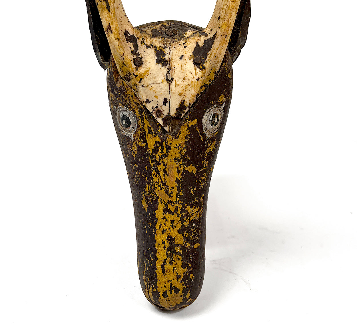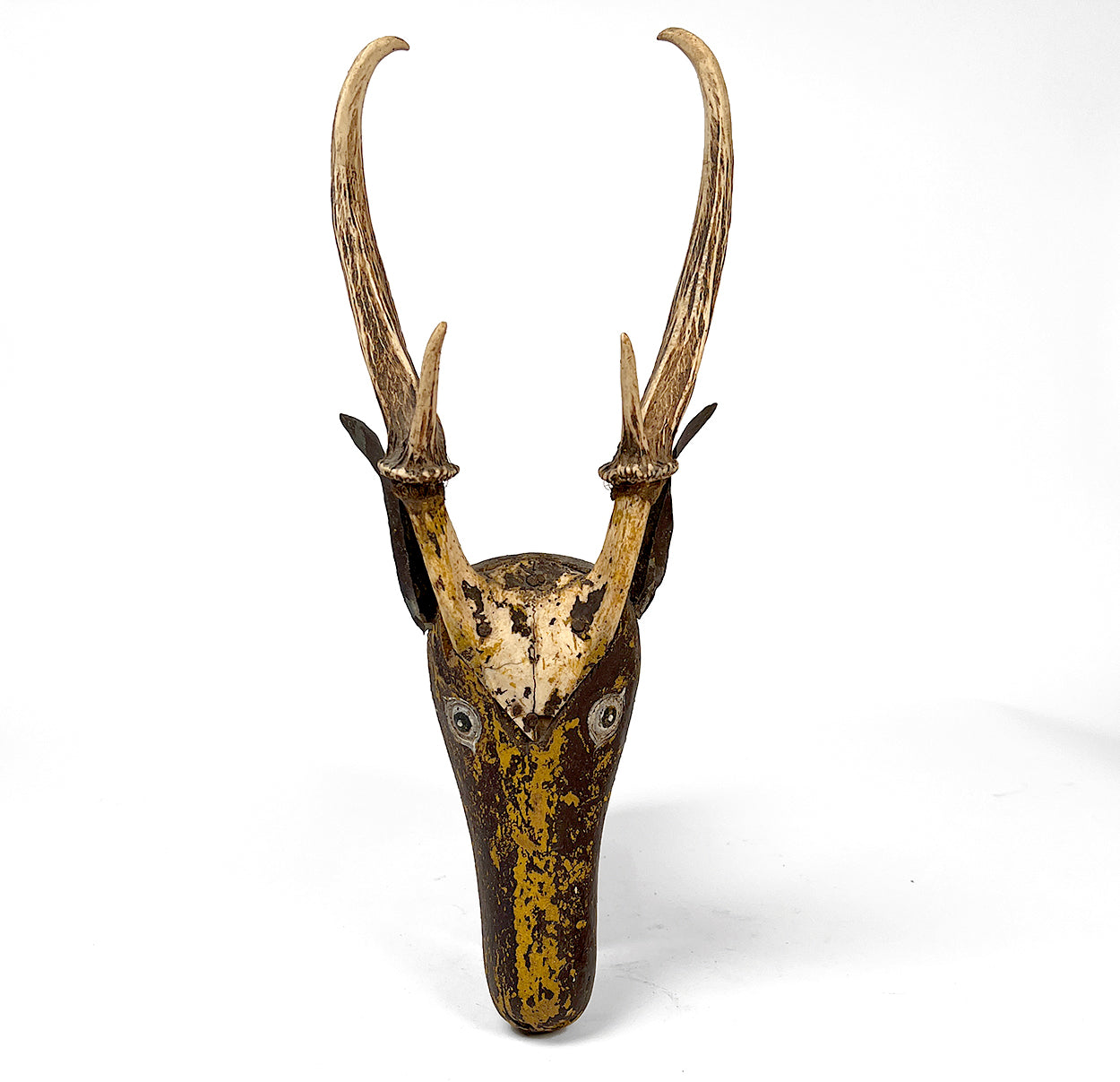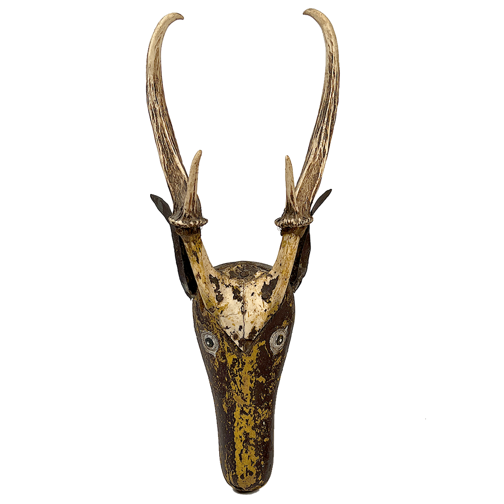 Early 20th century hand carved and polychrome painted ceremonial 'tun' from Guatemala. Cedar with stag horn.