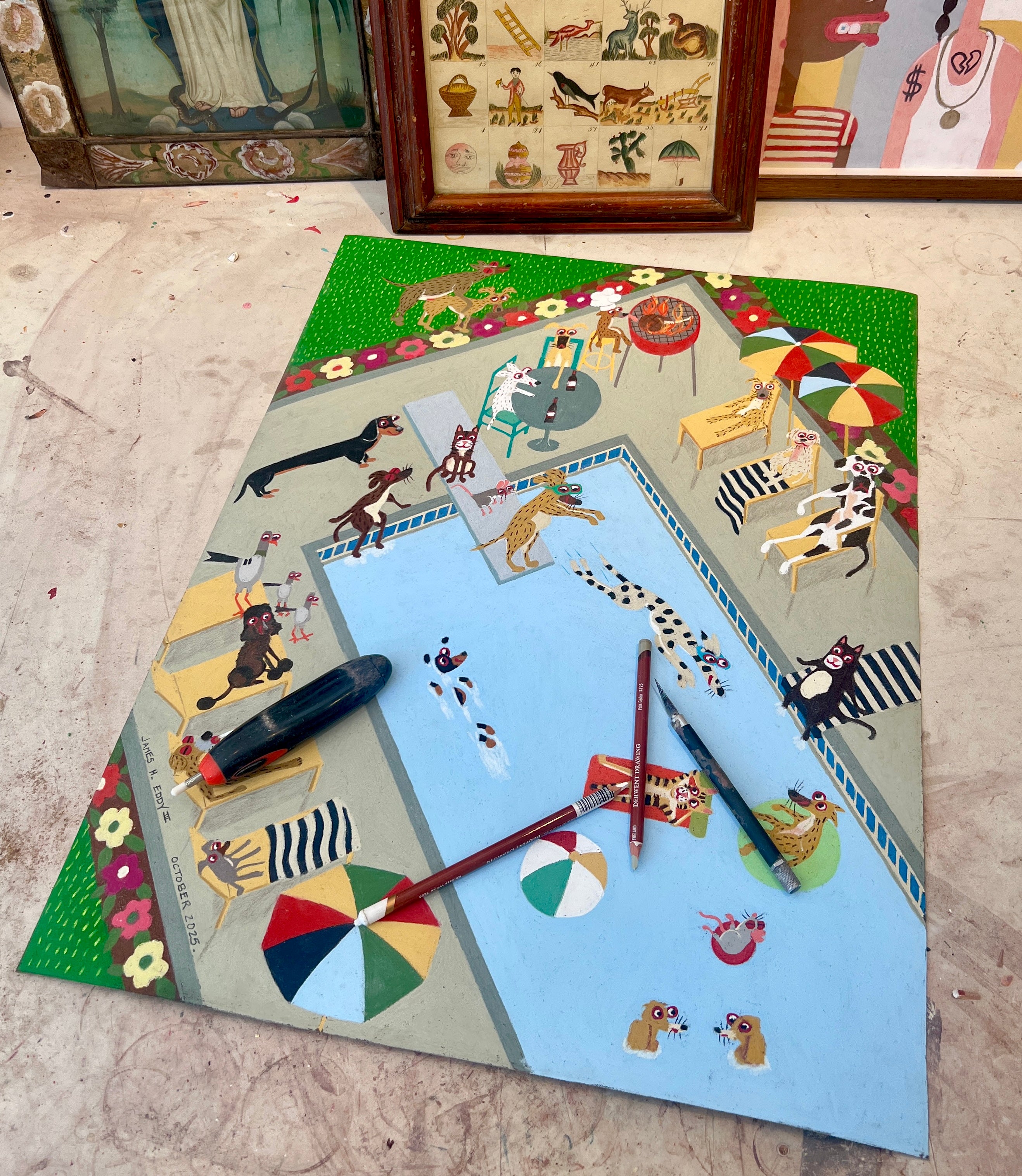 Soft pastel and pastel colored pencil on industrial grade sanded paper.