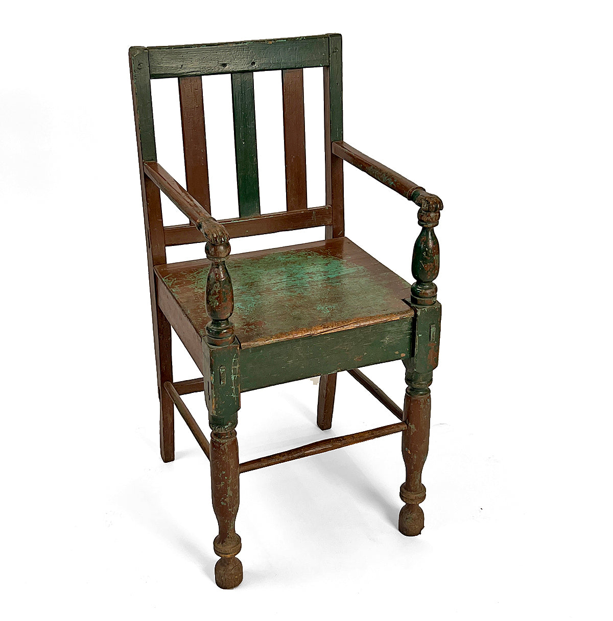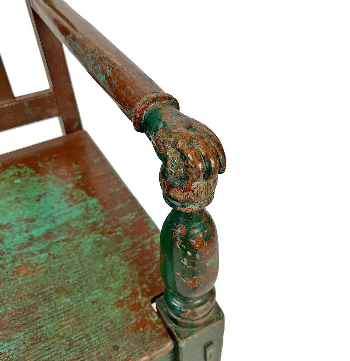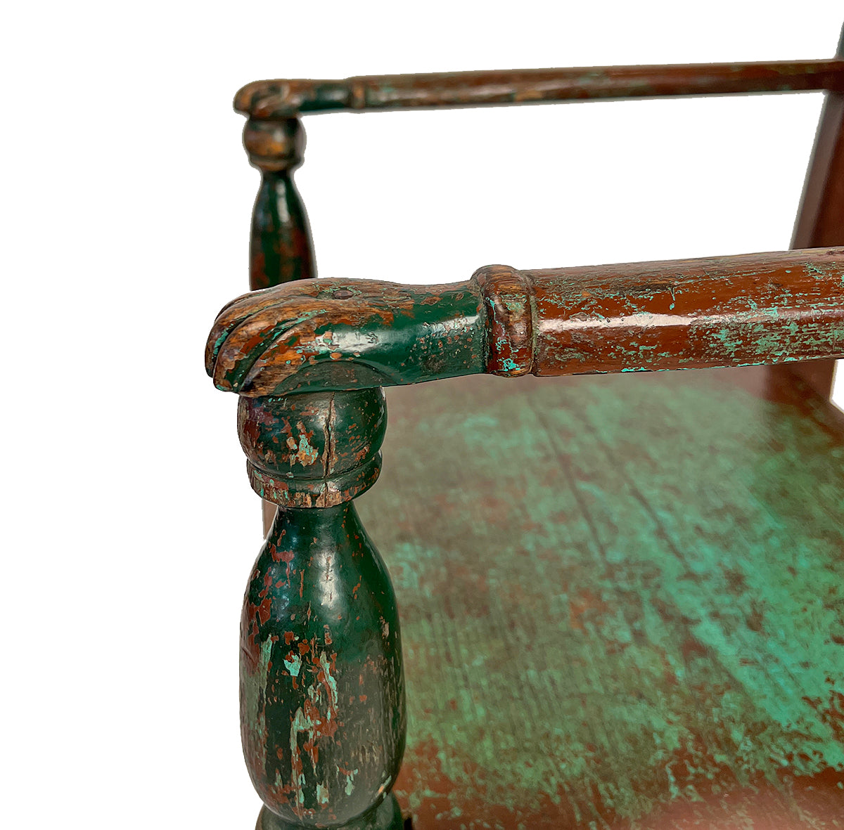 Late 19th / early 20th century hand painted and hand carved barber's chair from Guatemala. Excellent surface wear and patina.