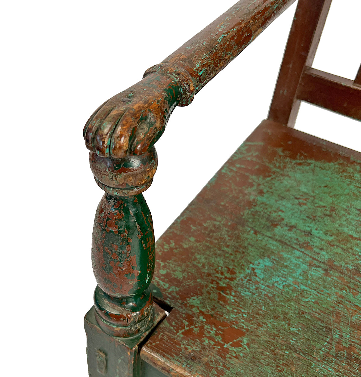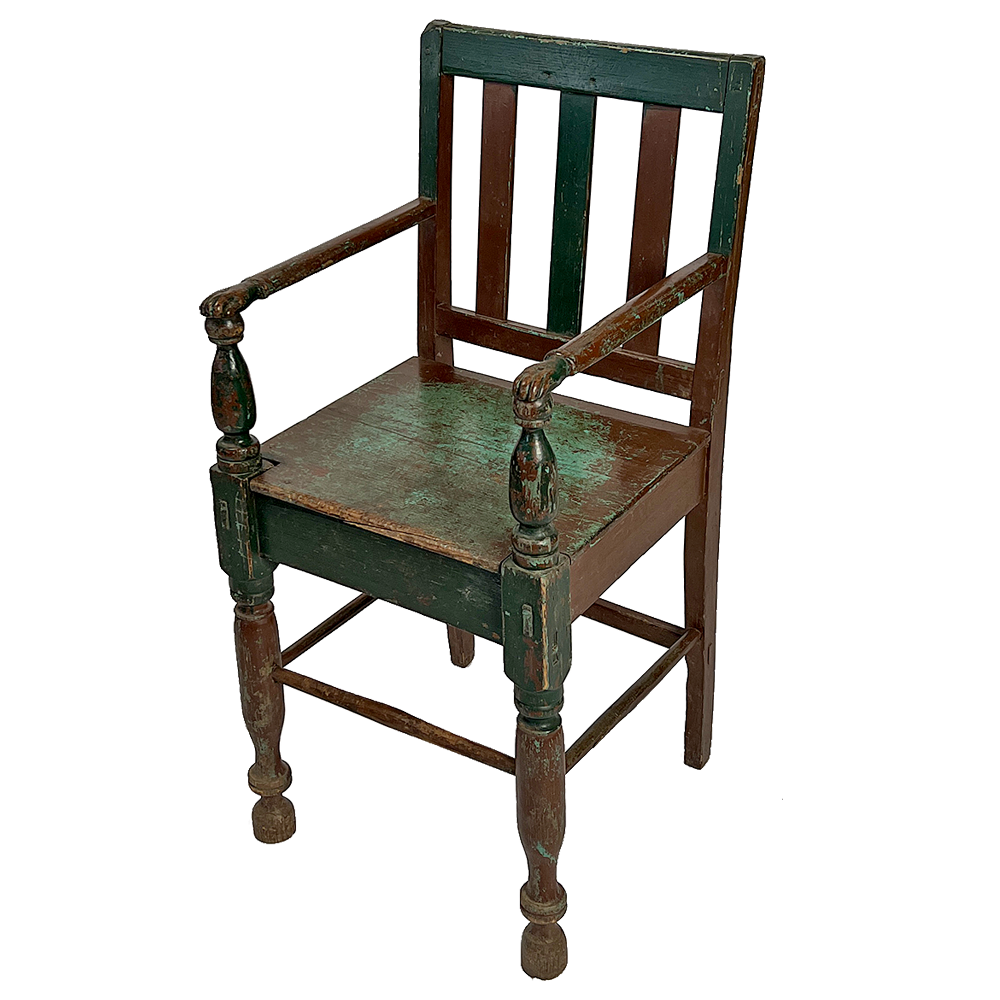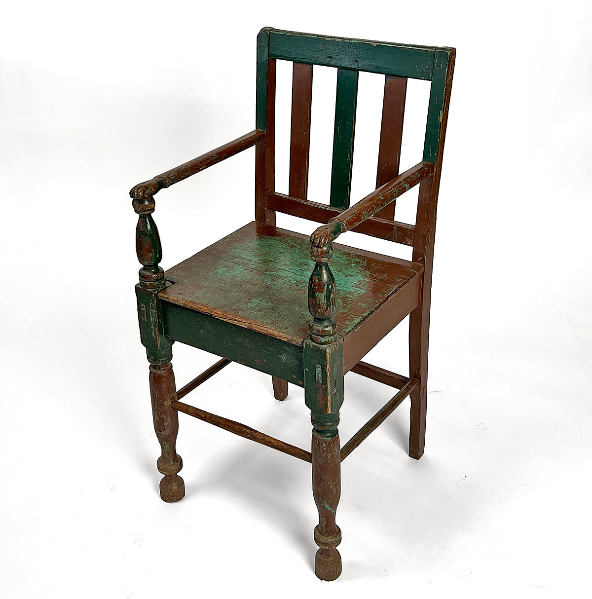 Late 19th / early 20th century hand painted and hand carved barber's chair from Guatemala. Excellent surface wear and patina.