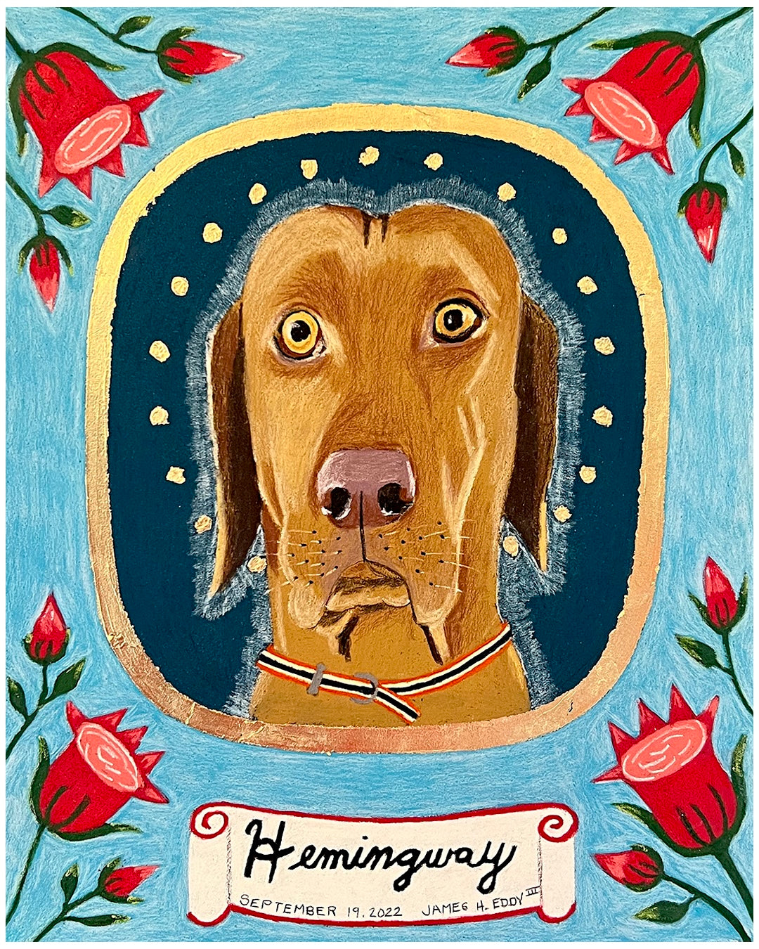 Soft pastel, pastel colored pencil and gold leaf on industrial grade sanded paper.
