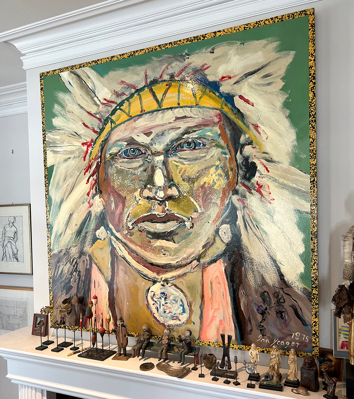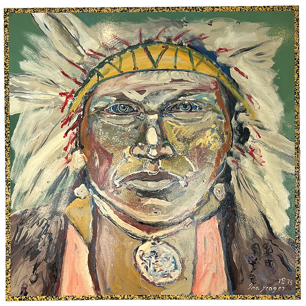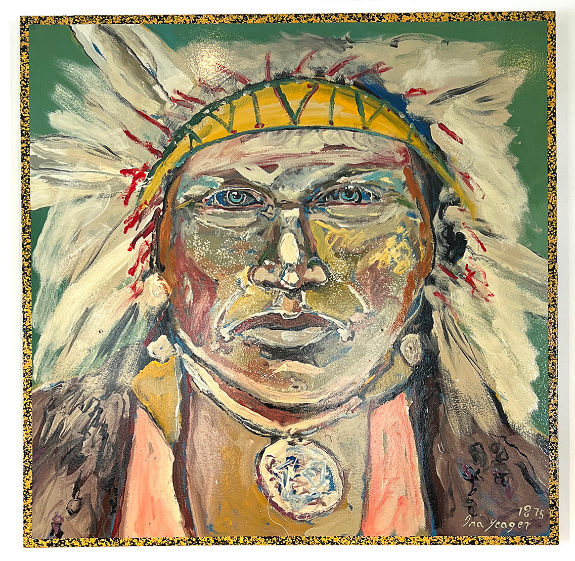 Original Ira Yeager oil on canvas portrait of an American Indian chieftain. Signed lower right.