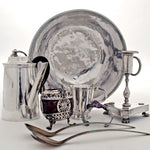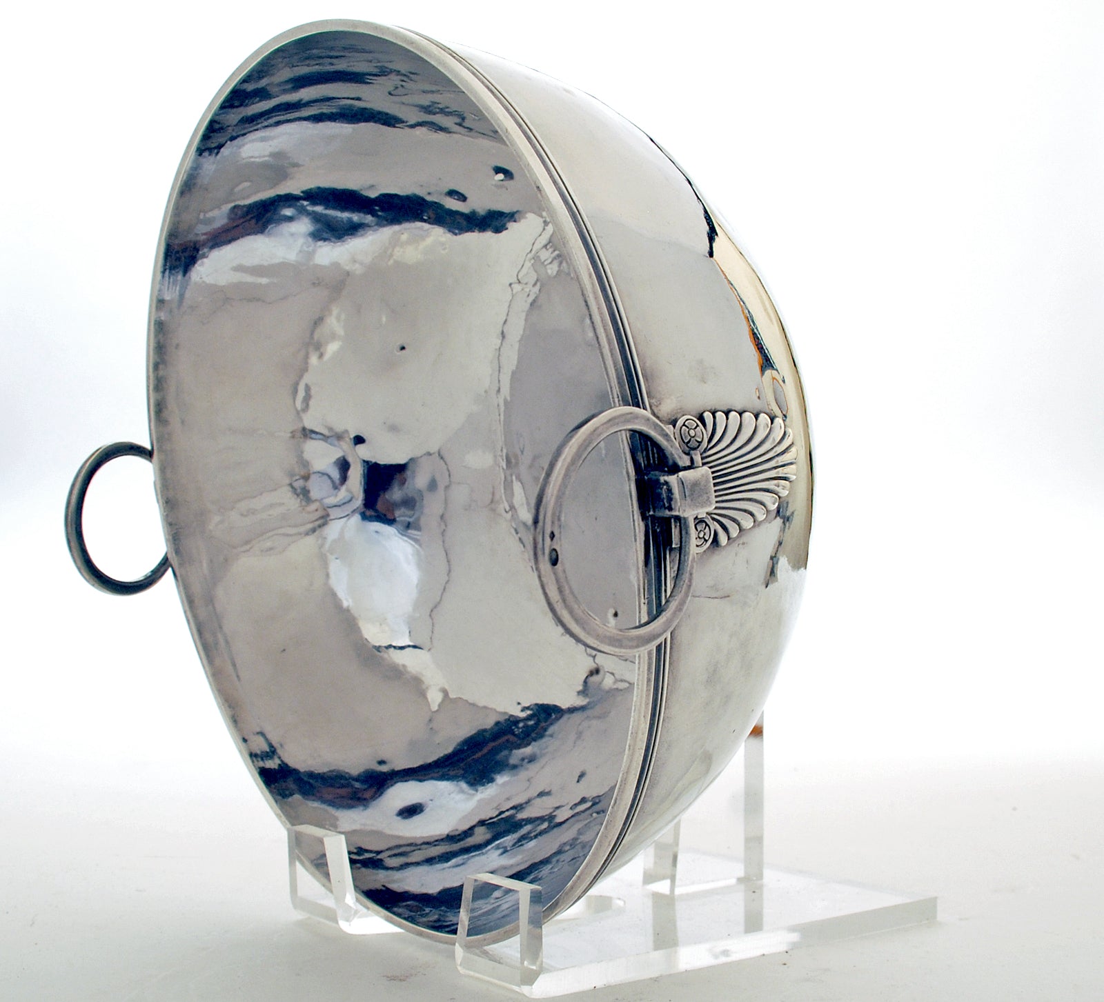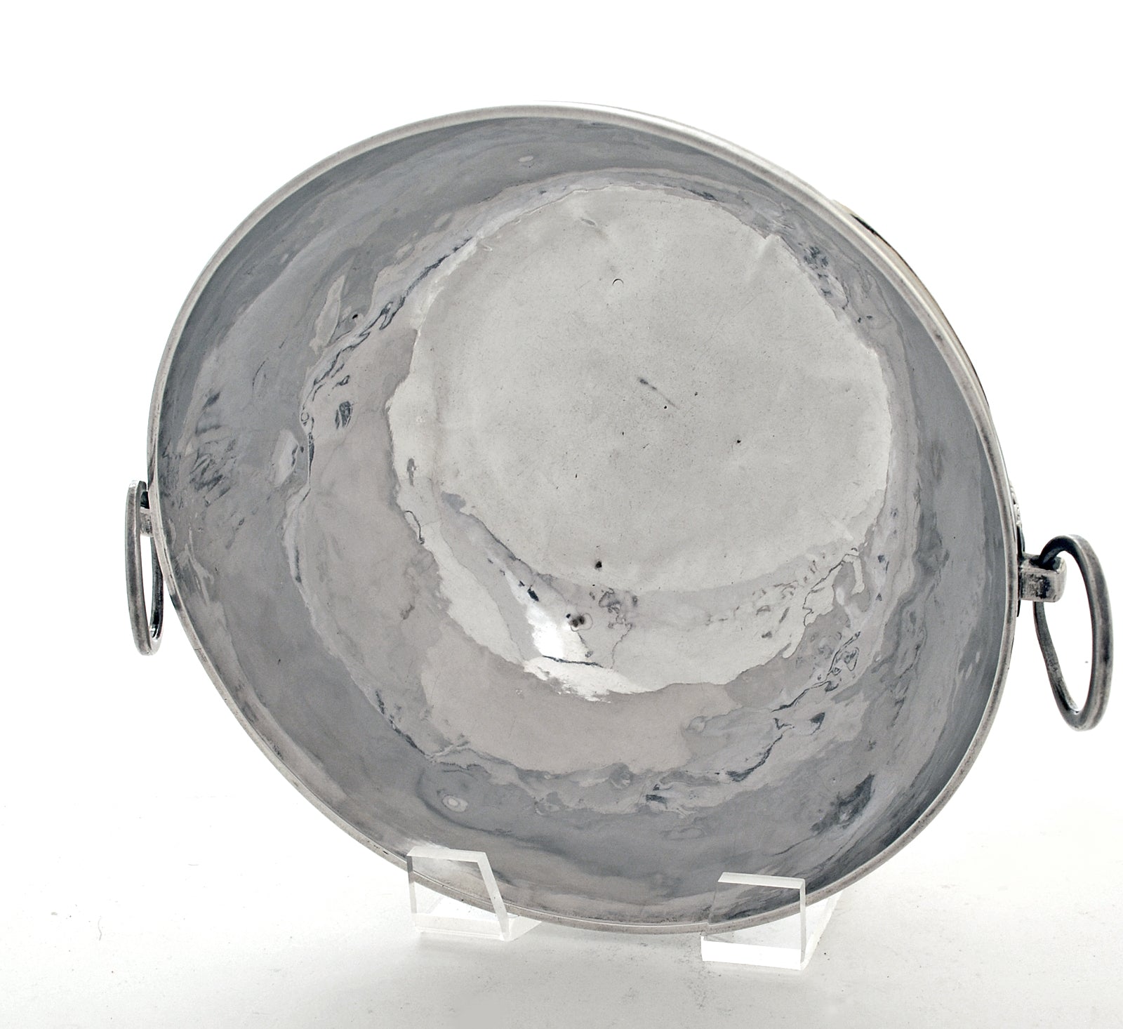 Dimensions: Measures 13 inches diameter (not including handles) x 5.75 inches high. 41.4 troy oz. total.