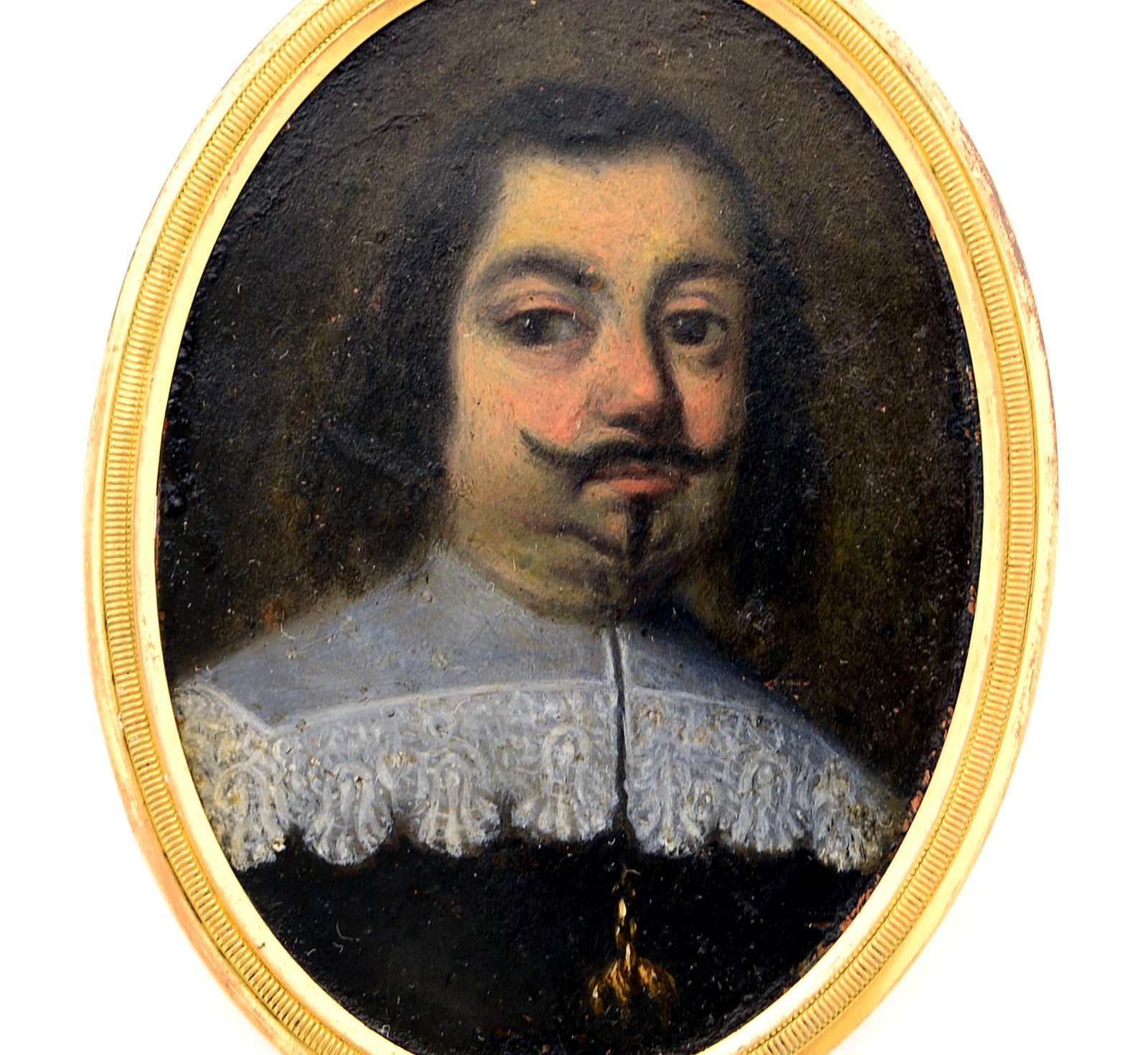 This 17th century miniature oil on copper retrato (portrait) represents a Spanish aristocrat in period costume. Displayed in the original case. Circa 1650 - 1700.