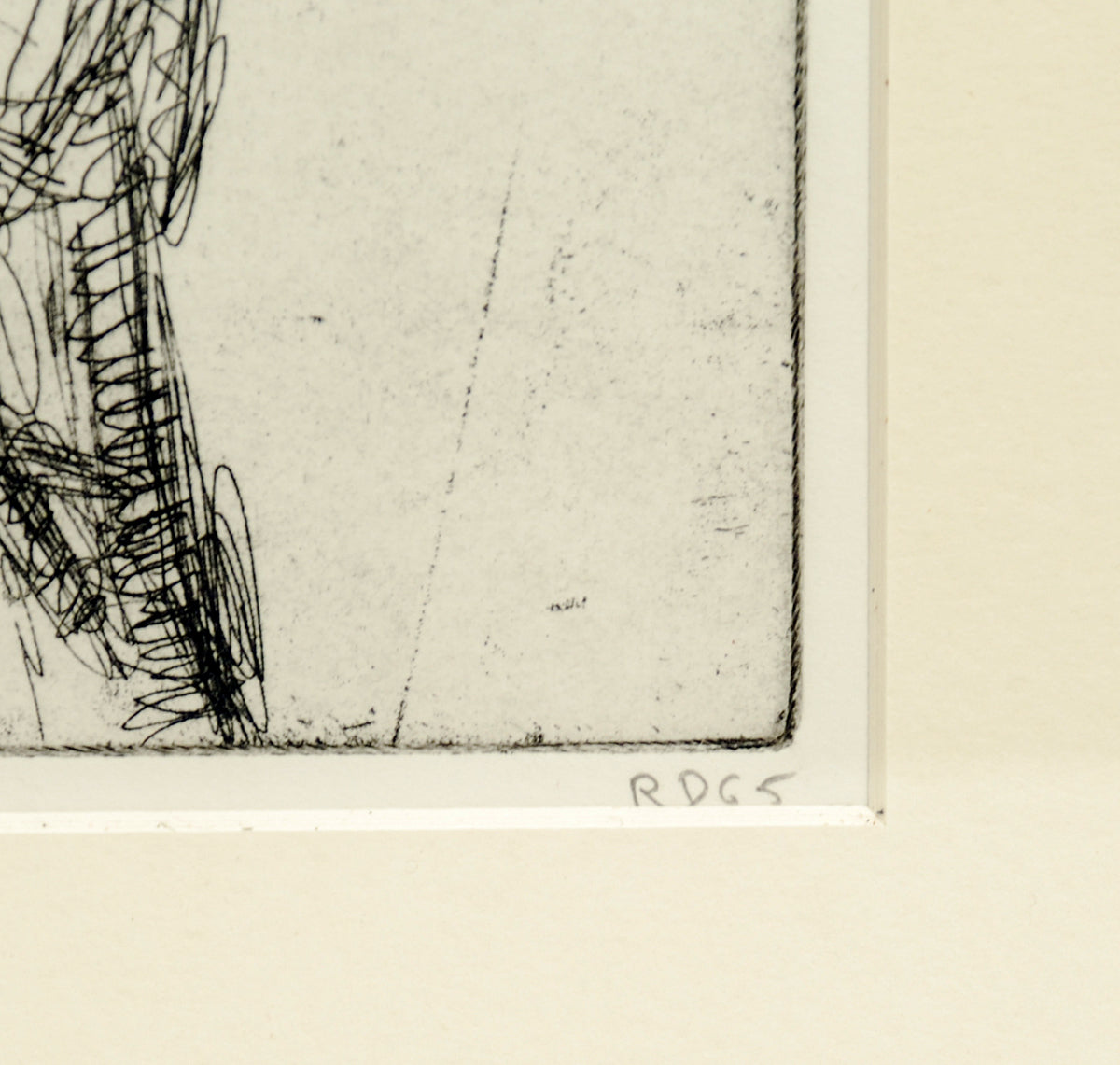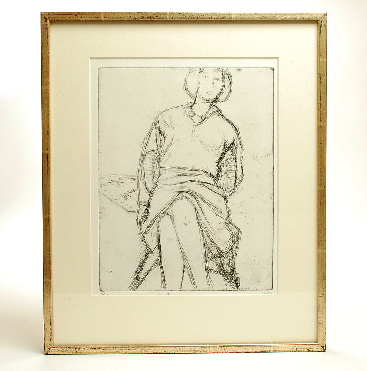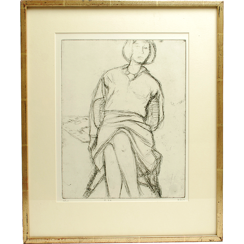 Original Richard Diebenkorn drypoint etching of Phyllis Diebenkorn - initialed 'DR' and dated '65 in lower right. Lower left - 6/77 followed by #24.