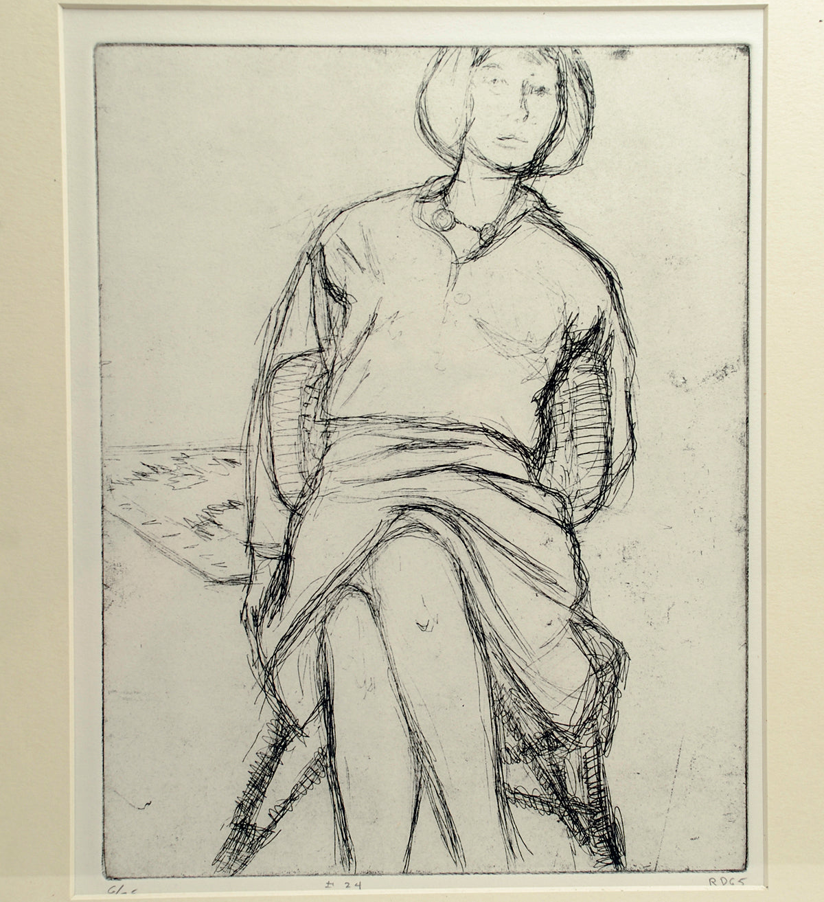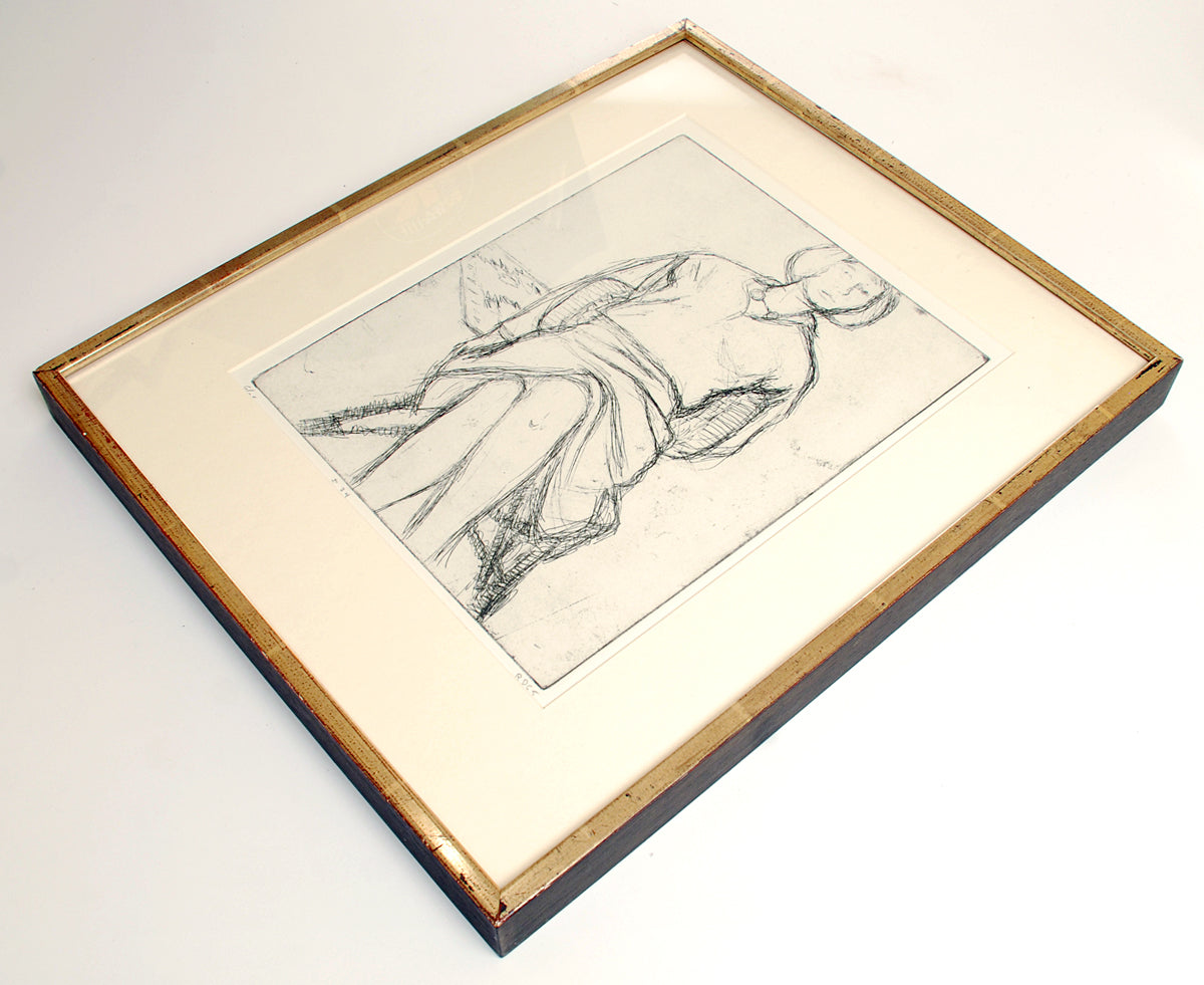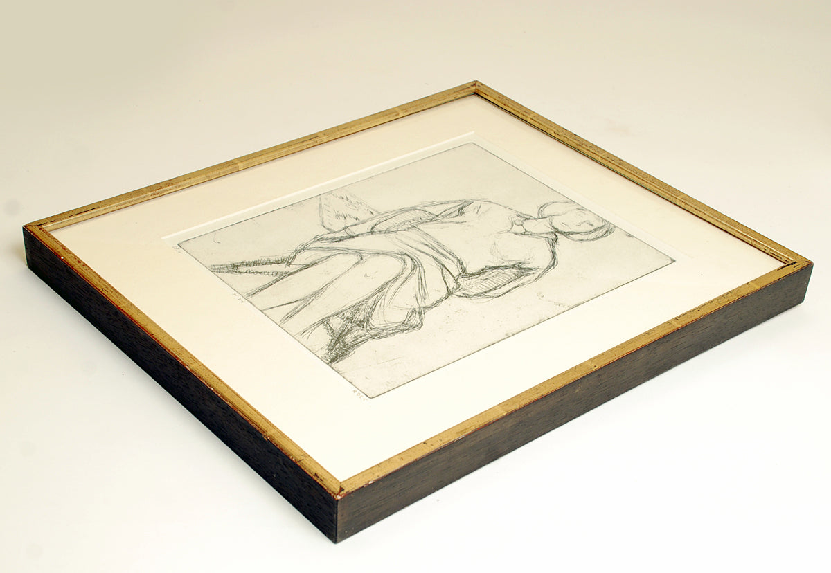 Original Richard Diebenkorn drypoint etching of Phyllis Diebenkorn - initialed 'DR' and dated '65 in lower right. Lower left - 6/77 followed by #24.