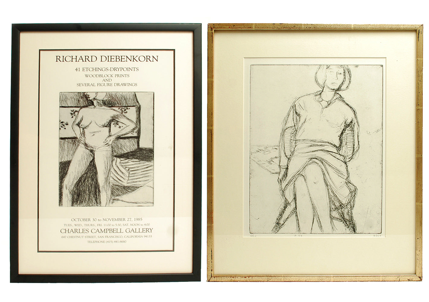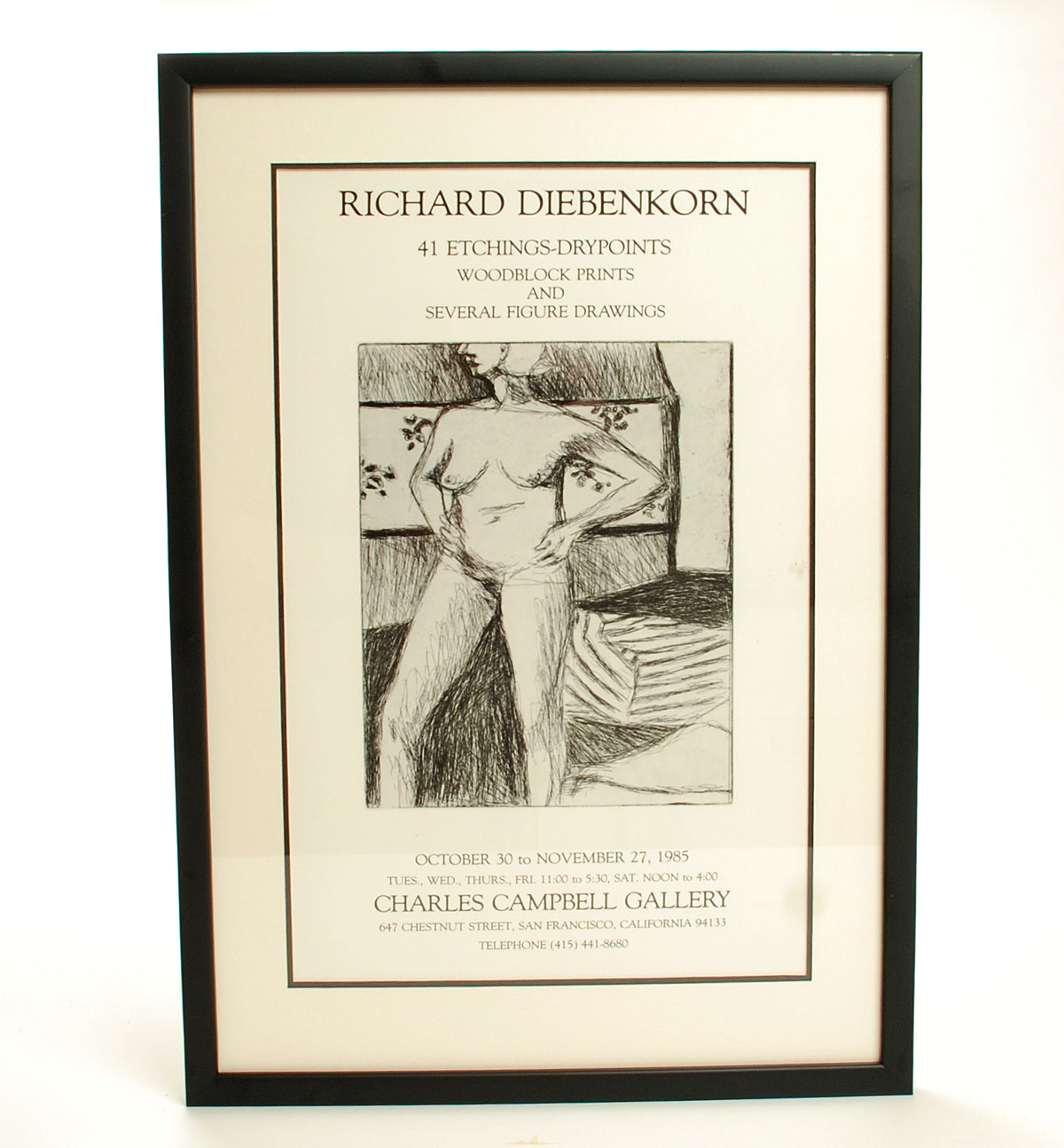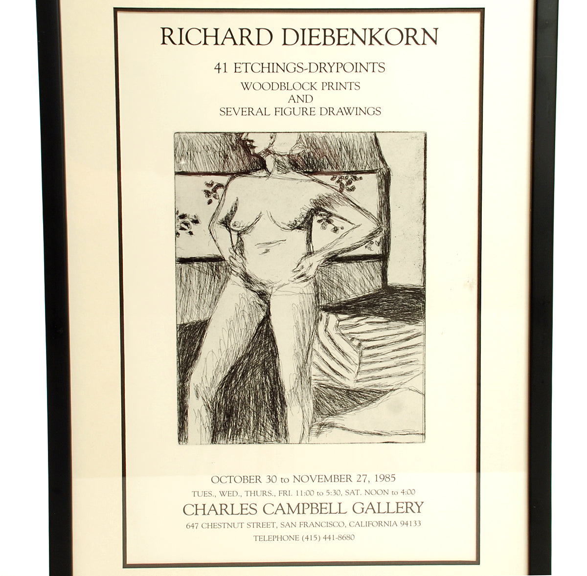 1. Charles Campbell Gallery - Richard Diebenkorn 41 Etchings-Drypoints, Wood-block prints and Figural Drawings. October / November 1985. (Framed handbill included)