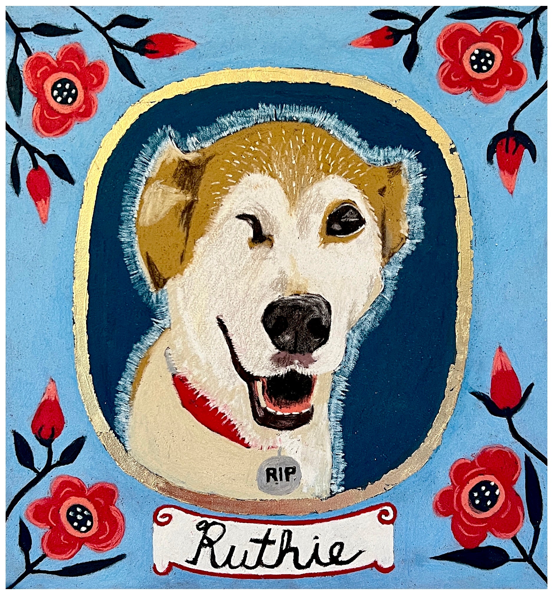 Soft pastel, pastel colored pencil and gold leaf on industrial grade sanded paper.