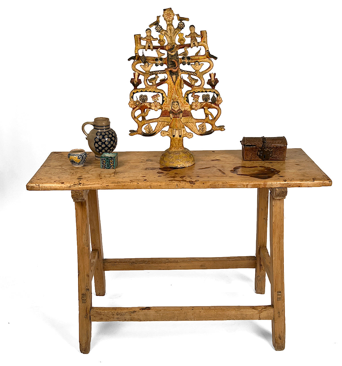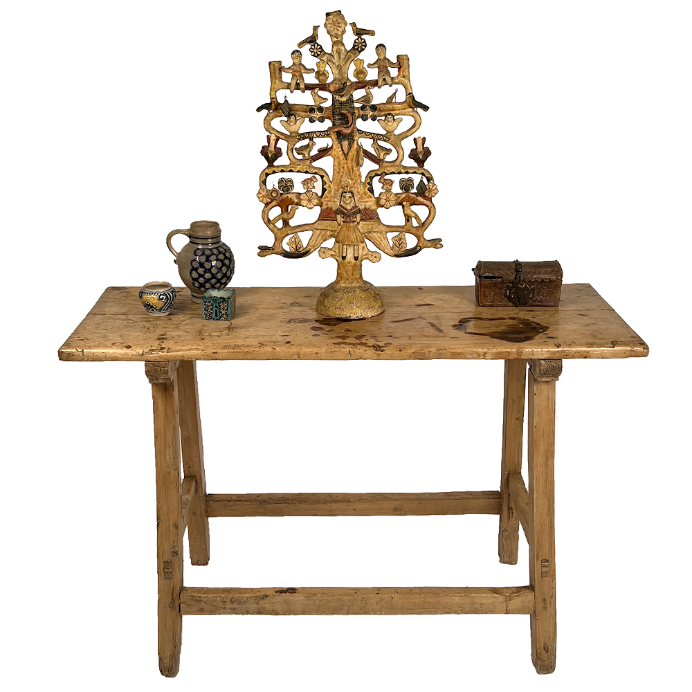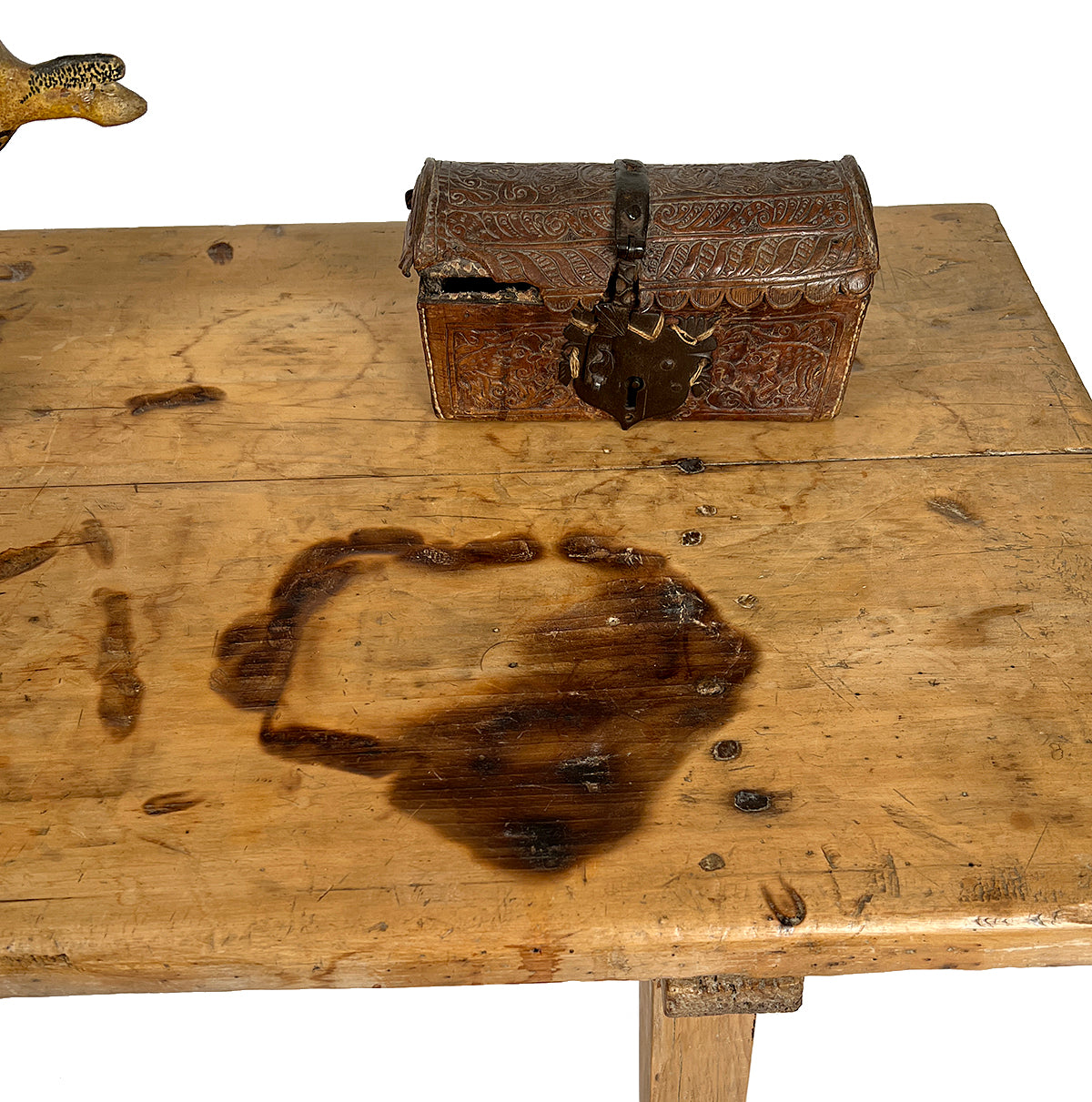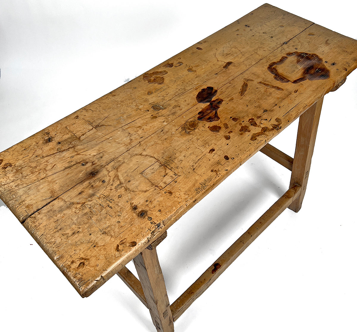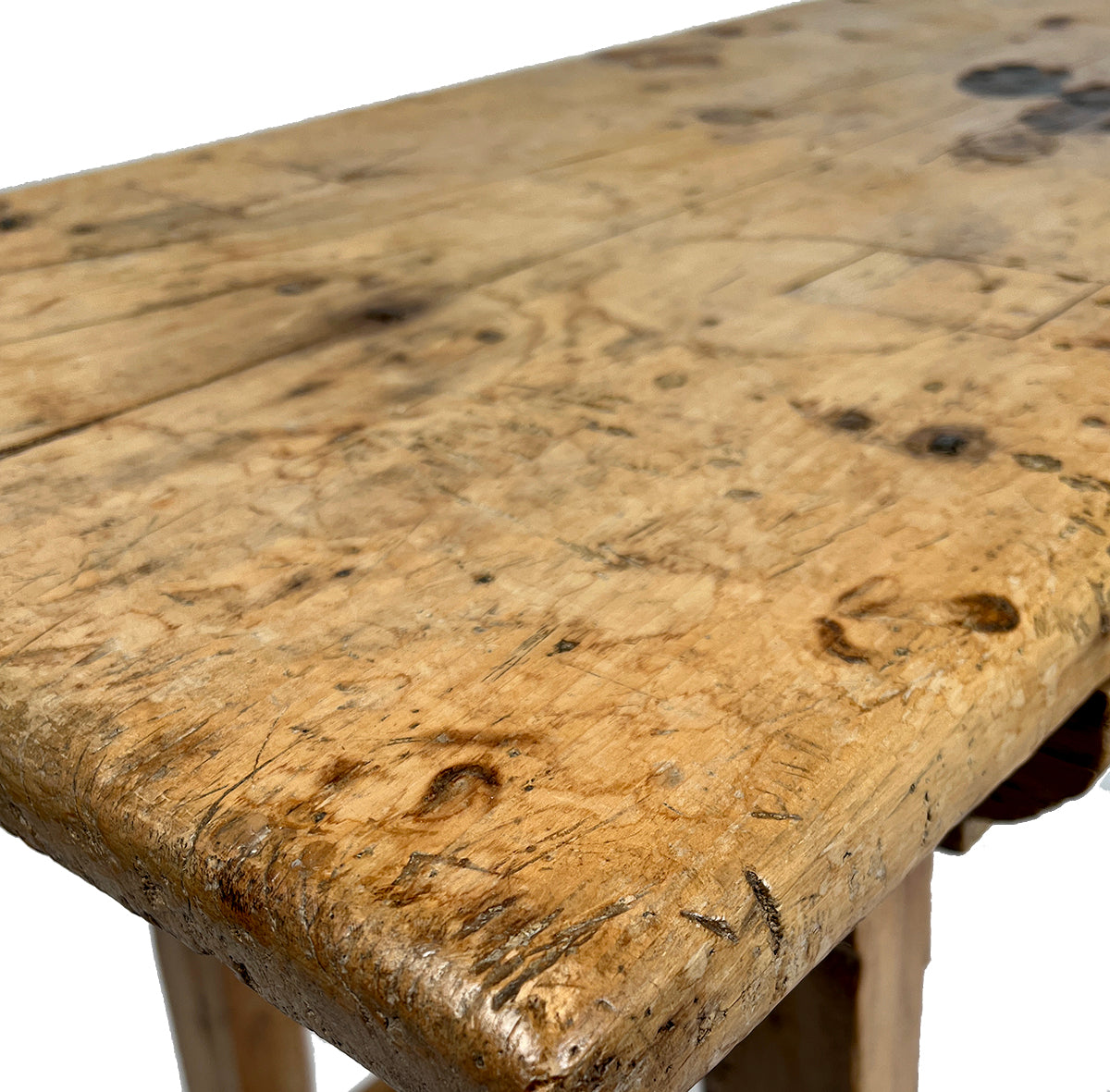 Early 19th century Sabino wood (Mexican cypress) altar table from Mexico with a thick single board top raised on splayed legs connected by a stretcher base. Mexico, circa 1825.