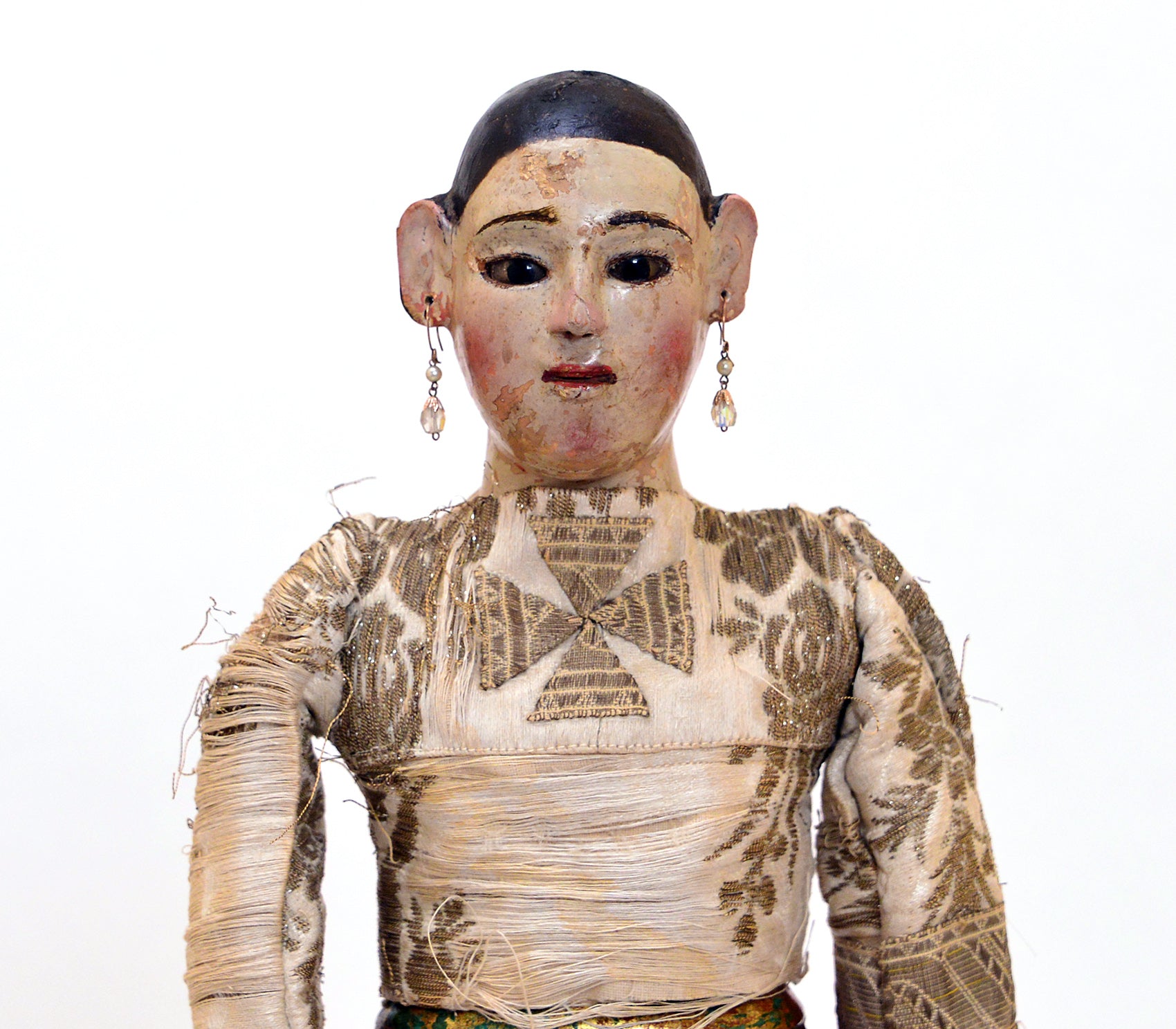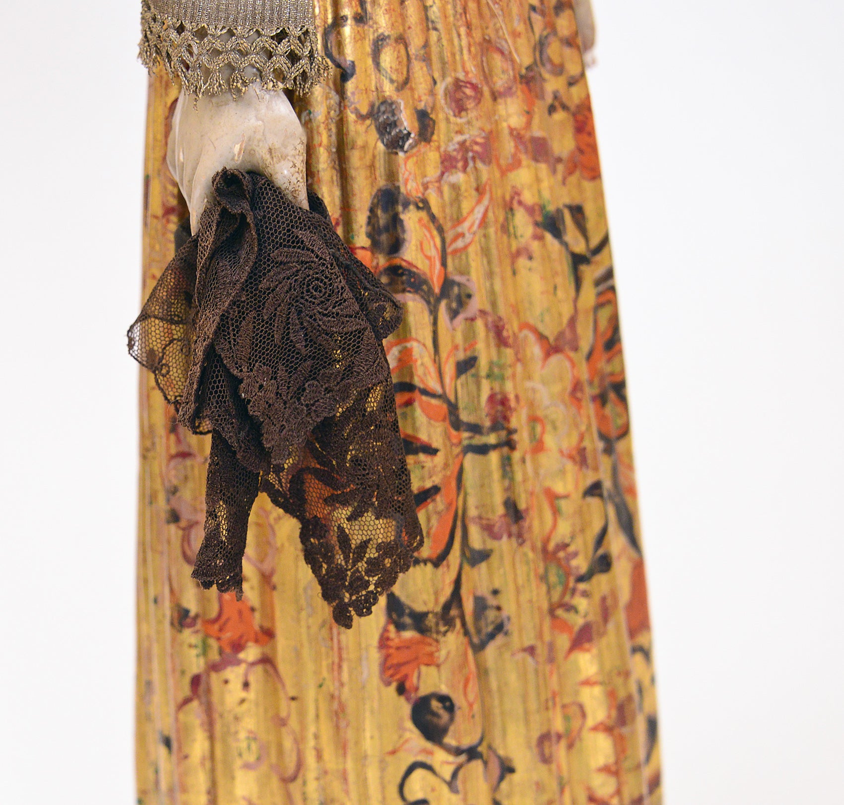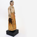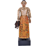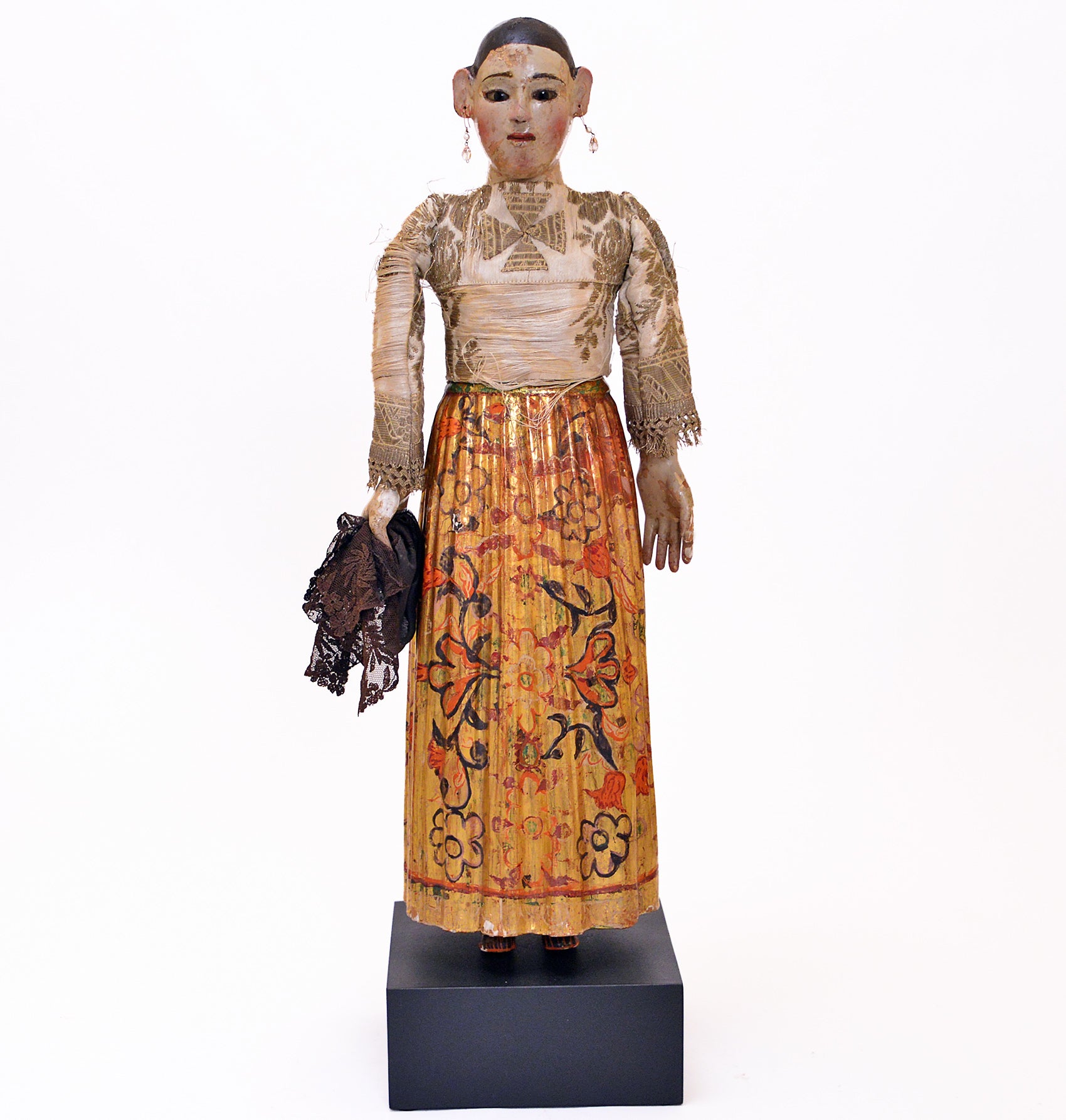 18th century Spanish colonial carved, polychrome painted and gilt wood Madonna in the Chinesco style. Raised on a modern wood base.