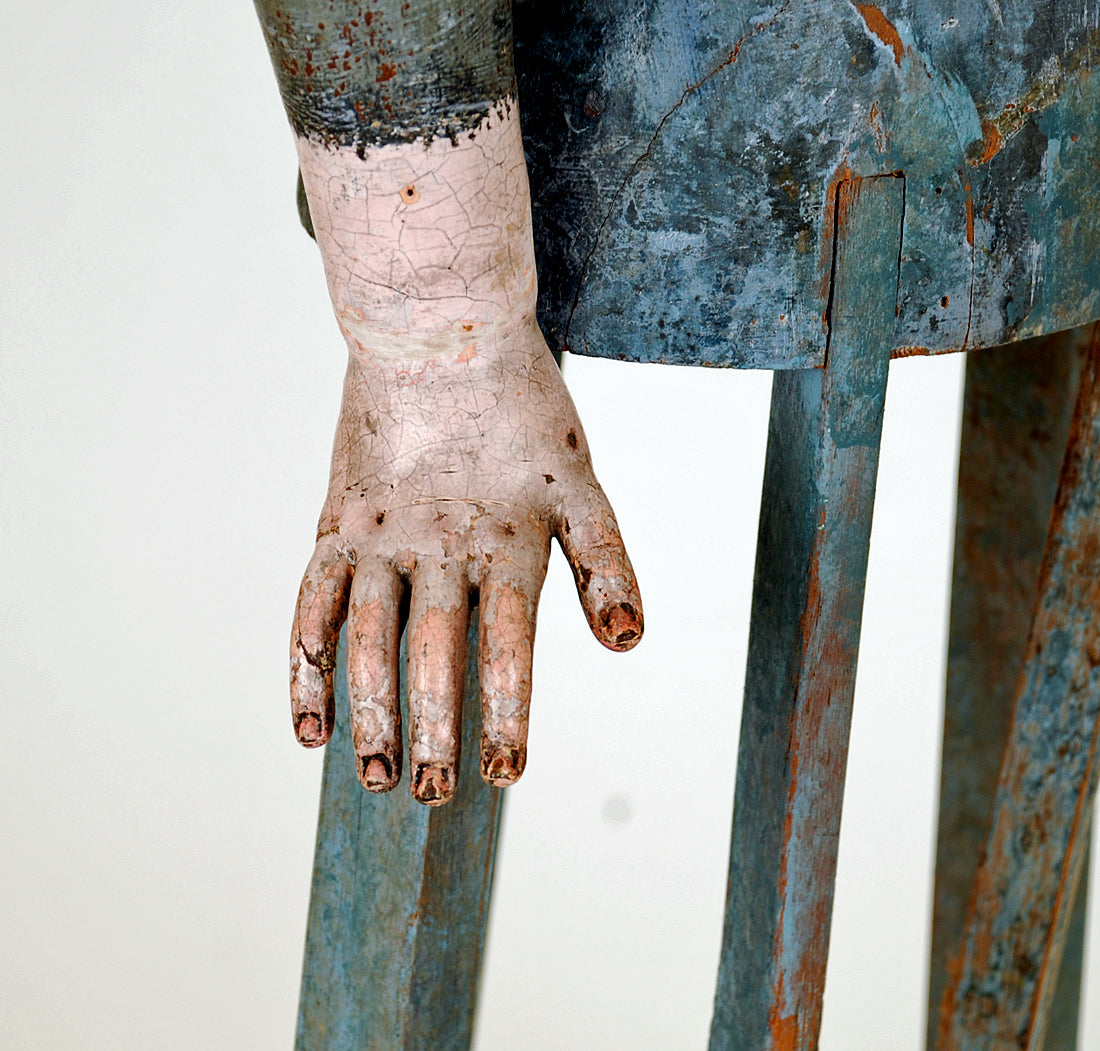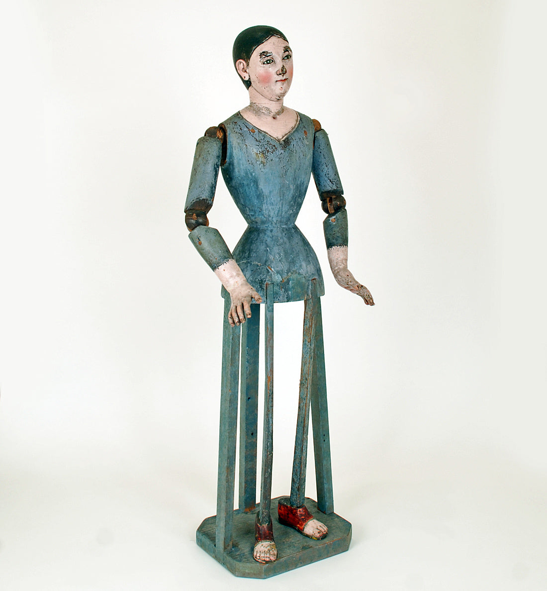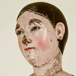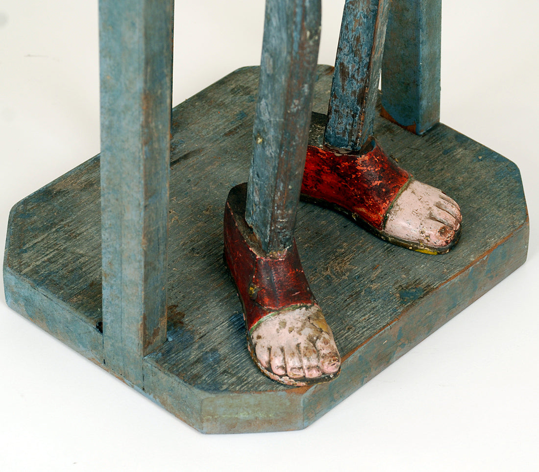 Santa Maria. A 19th century bastidor raised on a slatted cage base. Carved and polychrome painted wood with articulated joints and inset glass eyes. Guatemala. Circa 1850.