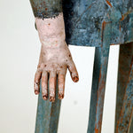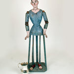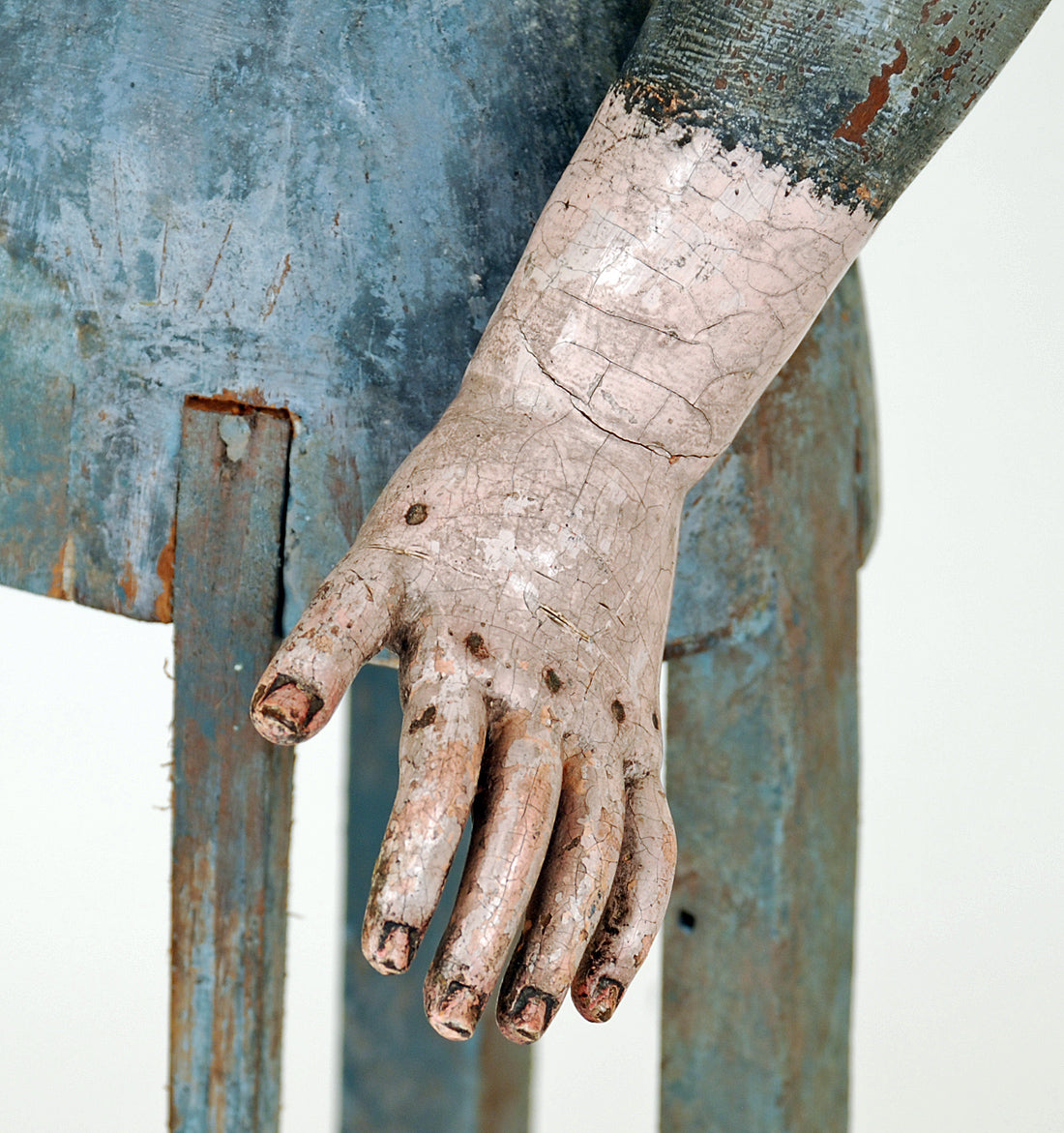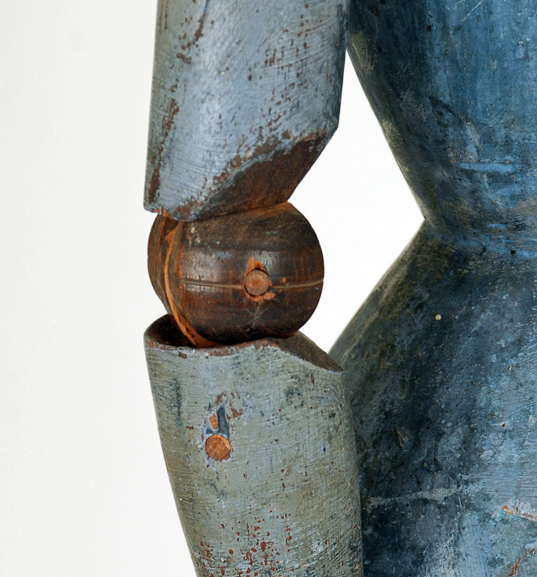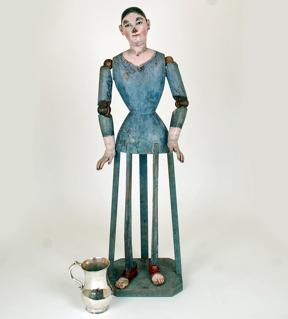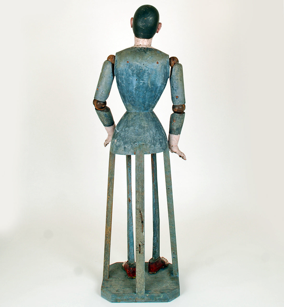 Santa Maria. A 19th century bastidor raised on a slatted cage base. Carved and polychrome painted wood with articulated joints and inset glass eyes. Guatemala. Circa 1850.