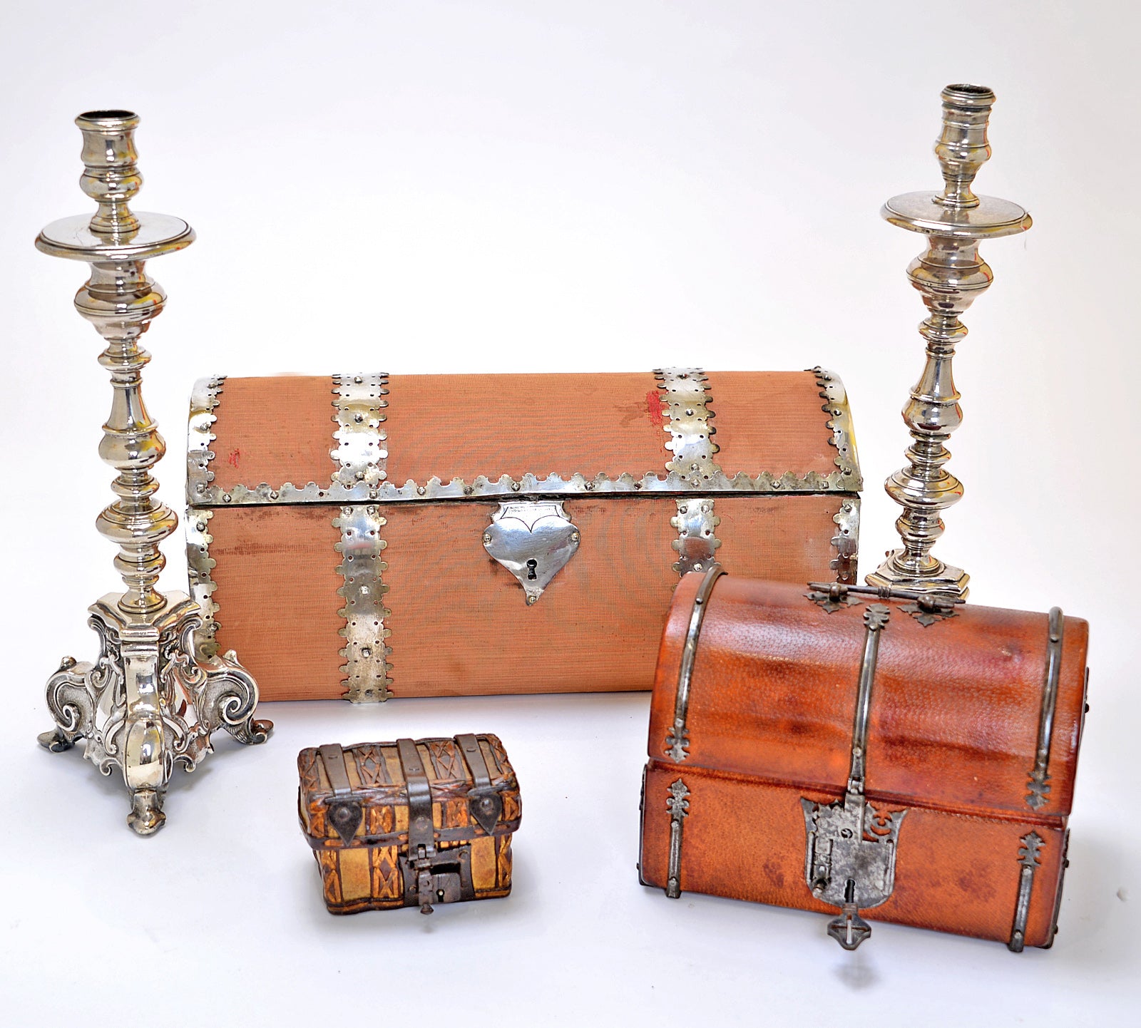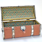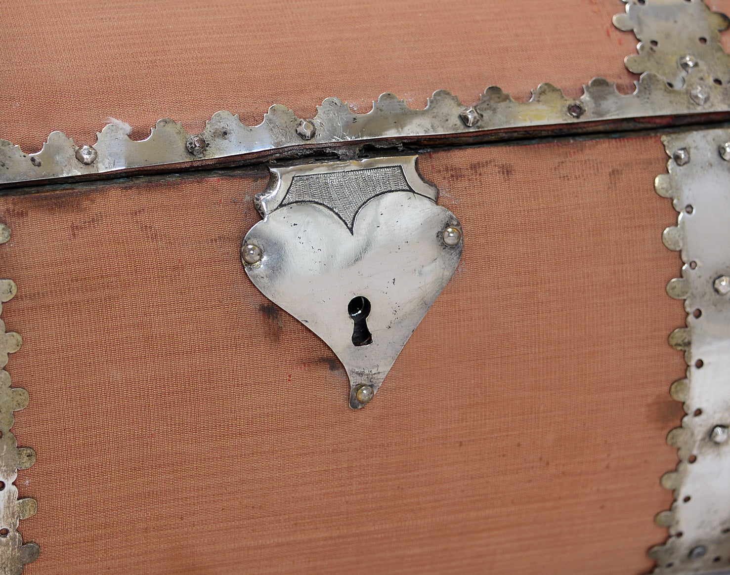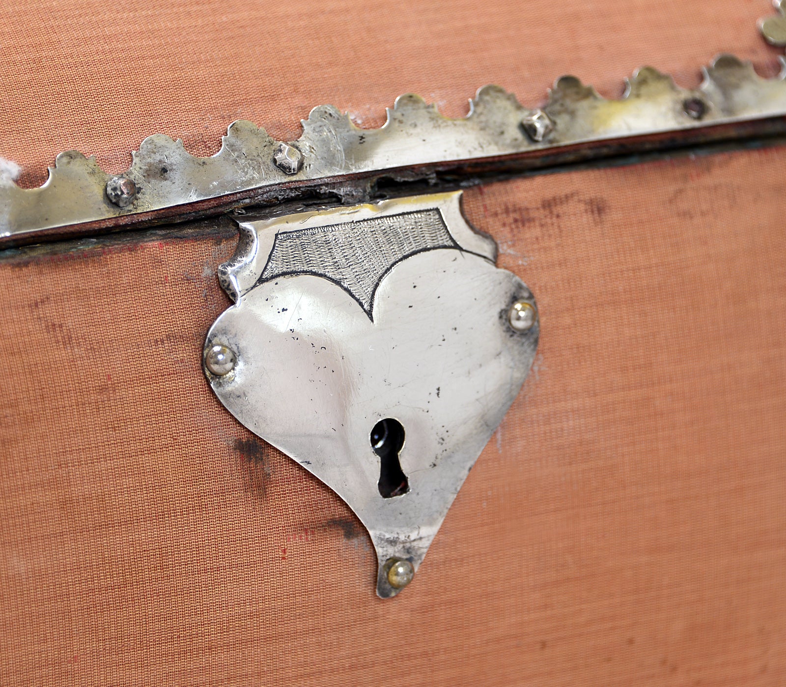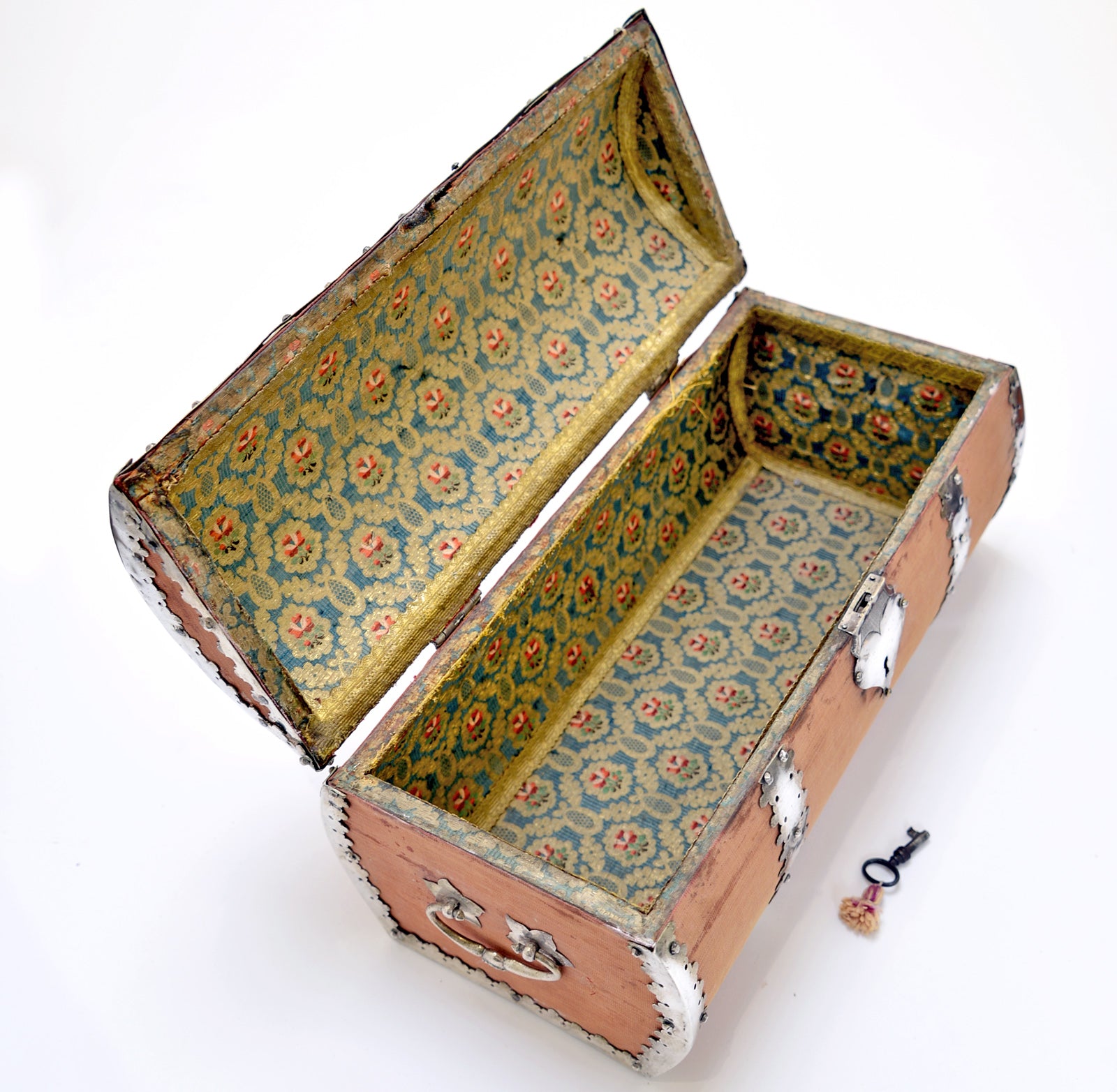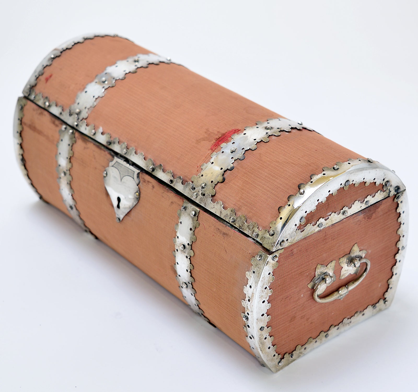 Late 18th / early 19th century Spanish colonial domed and lidded 'cofrecito' with silver hinges, handles, corner brackets and heart shaped lock-plate. Interior with metallic threaded selvages and silk lined fabric.