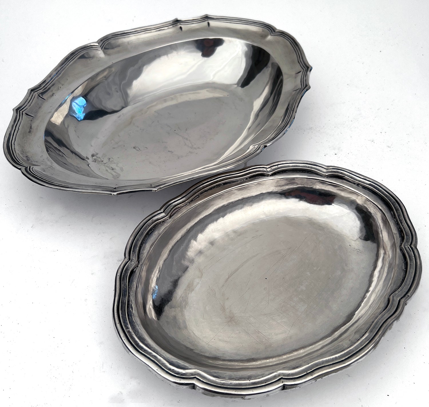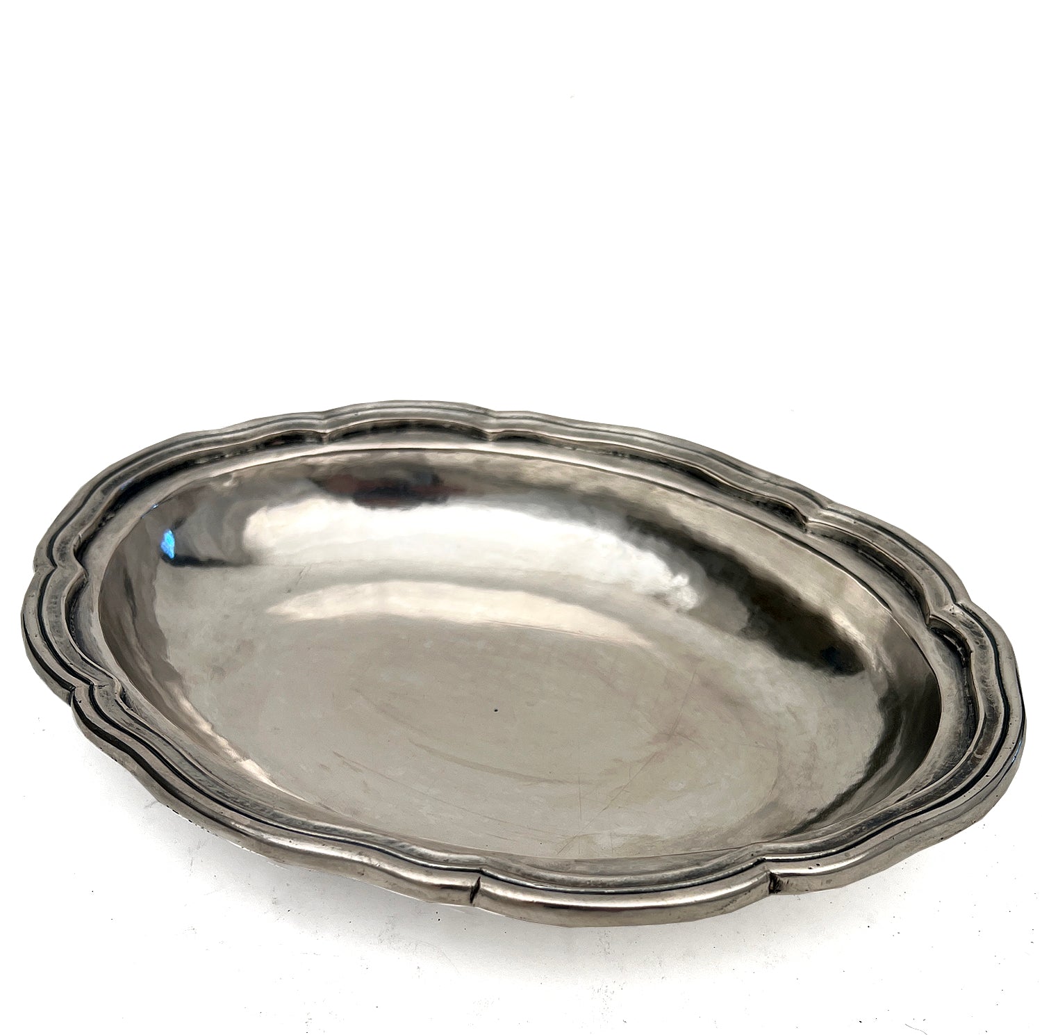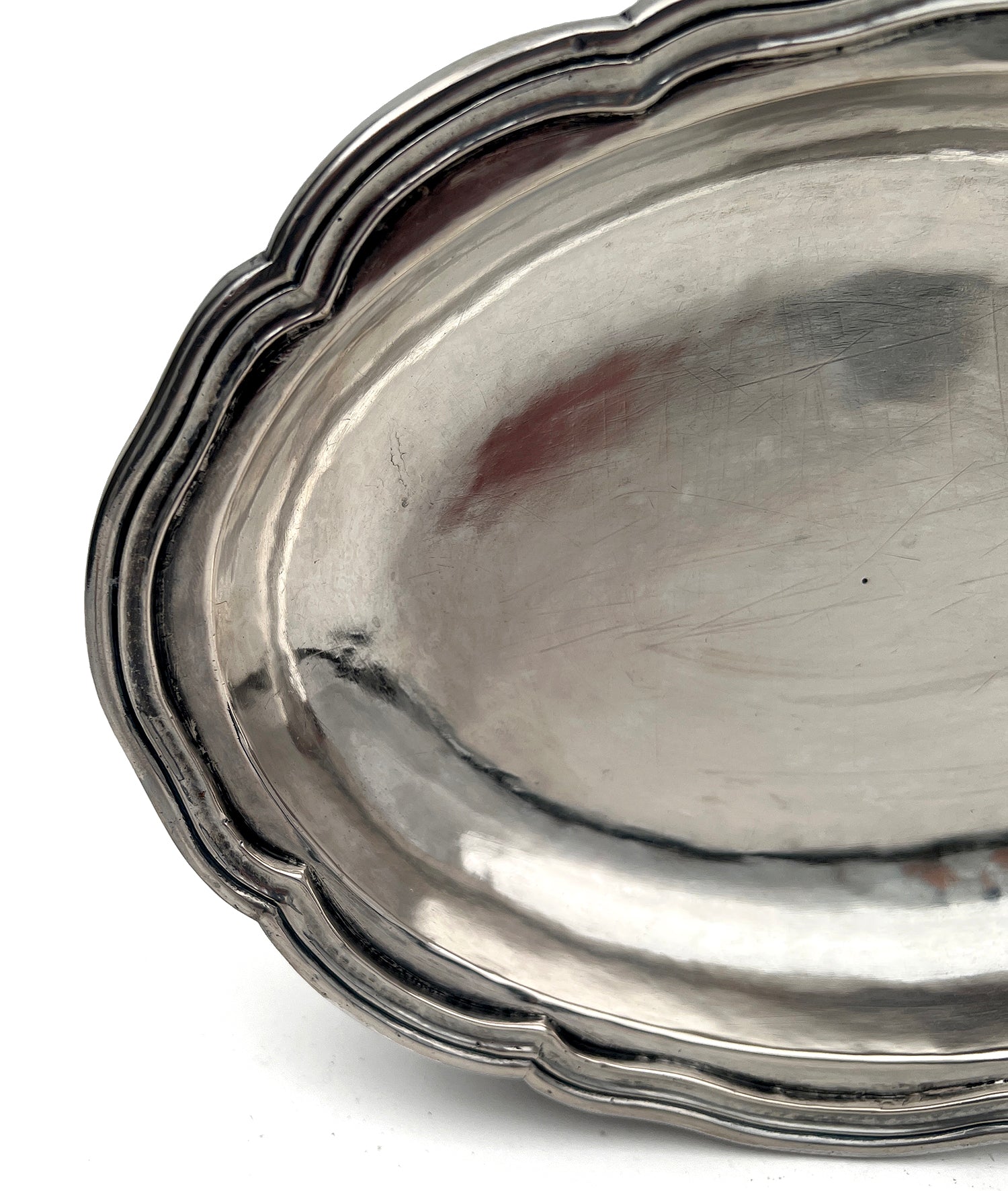 A large and impressive 18th century Spanish colonial silver tray with raised scalloped edge and visible center mark. 22.3 troy ounces.