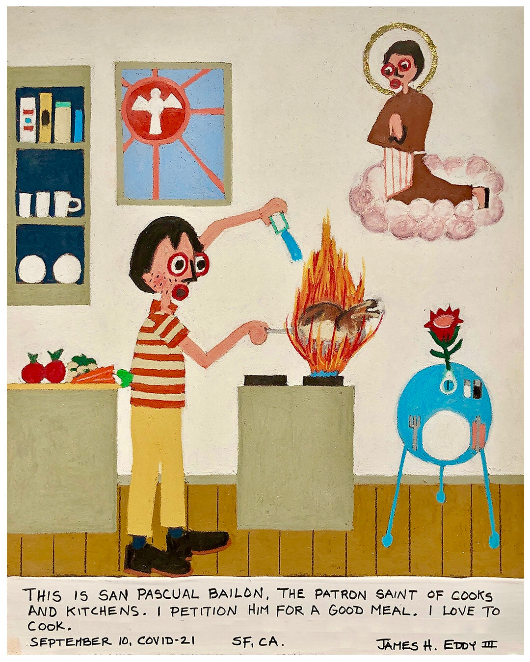 'This is San Pascual Bailon, the patron saint of cooks and kitchens. I petition him for a good meal. I love to cook'.