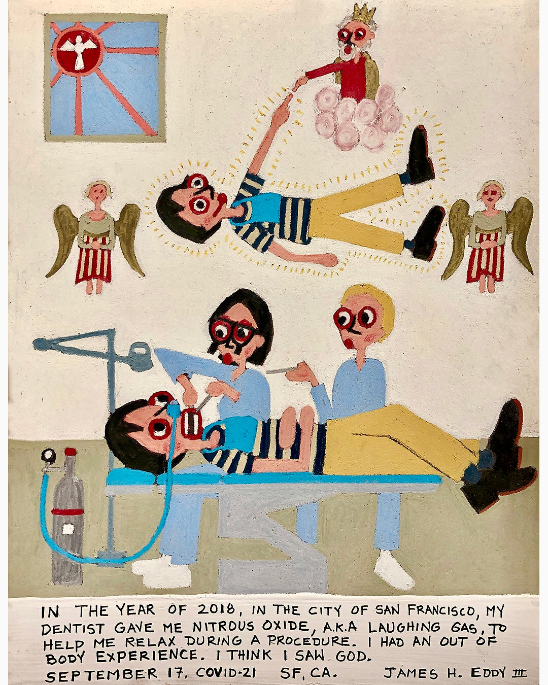 “In the year of 2018, in the City of San Francisco, my dentist gave me nitrous oxide, aka laughing gas, to help me relax during a procedure. I had an out of body experience. I think I saw God.”