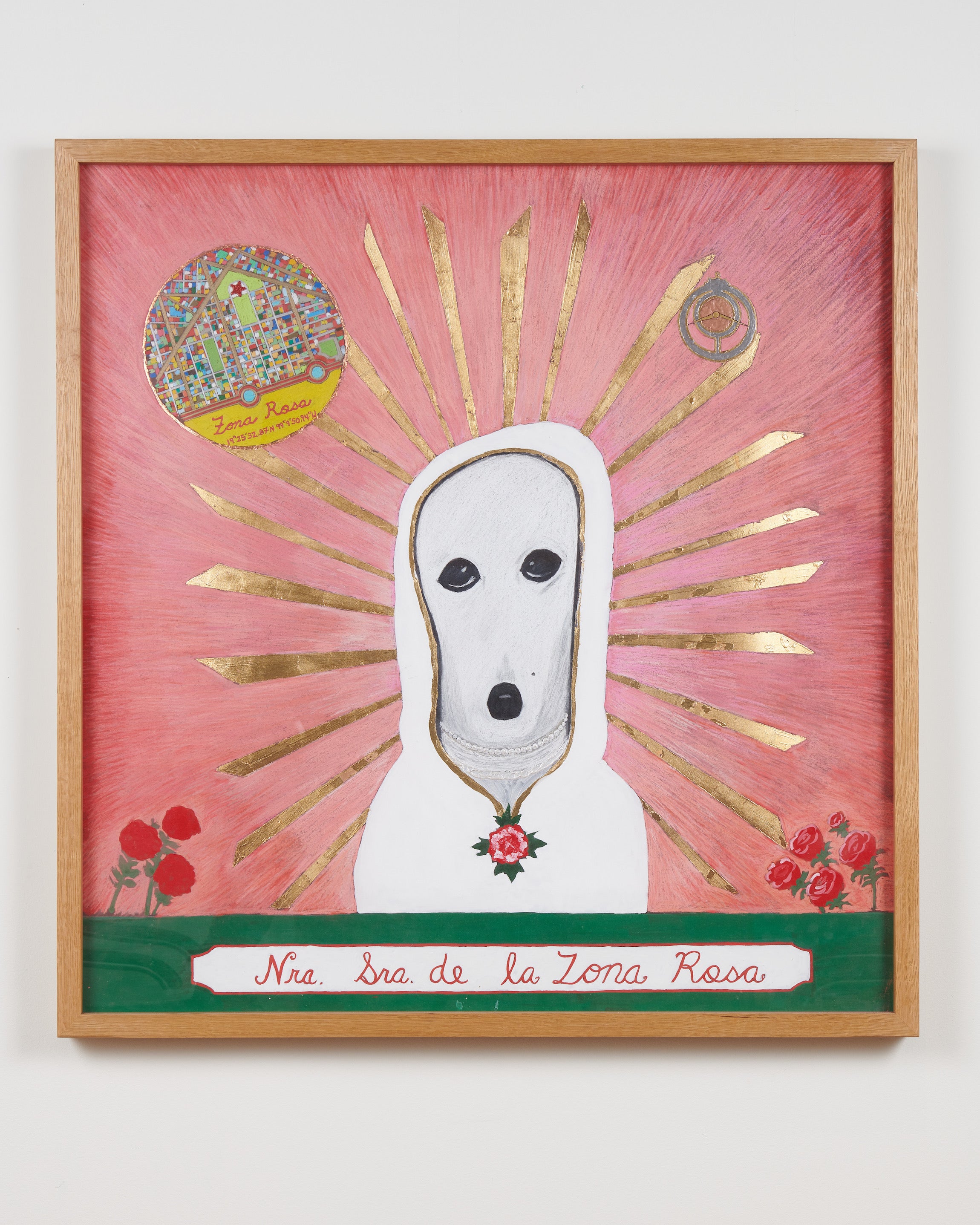 Our Lady of the Zone Rosa with map and astrolabe. Soft pastel, pastel colored pencil and gold leaf on industrial grade sanded paper.