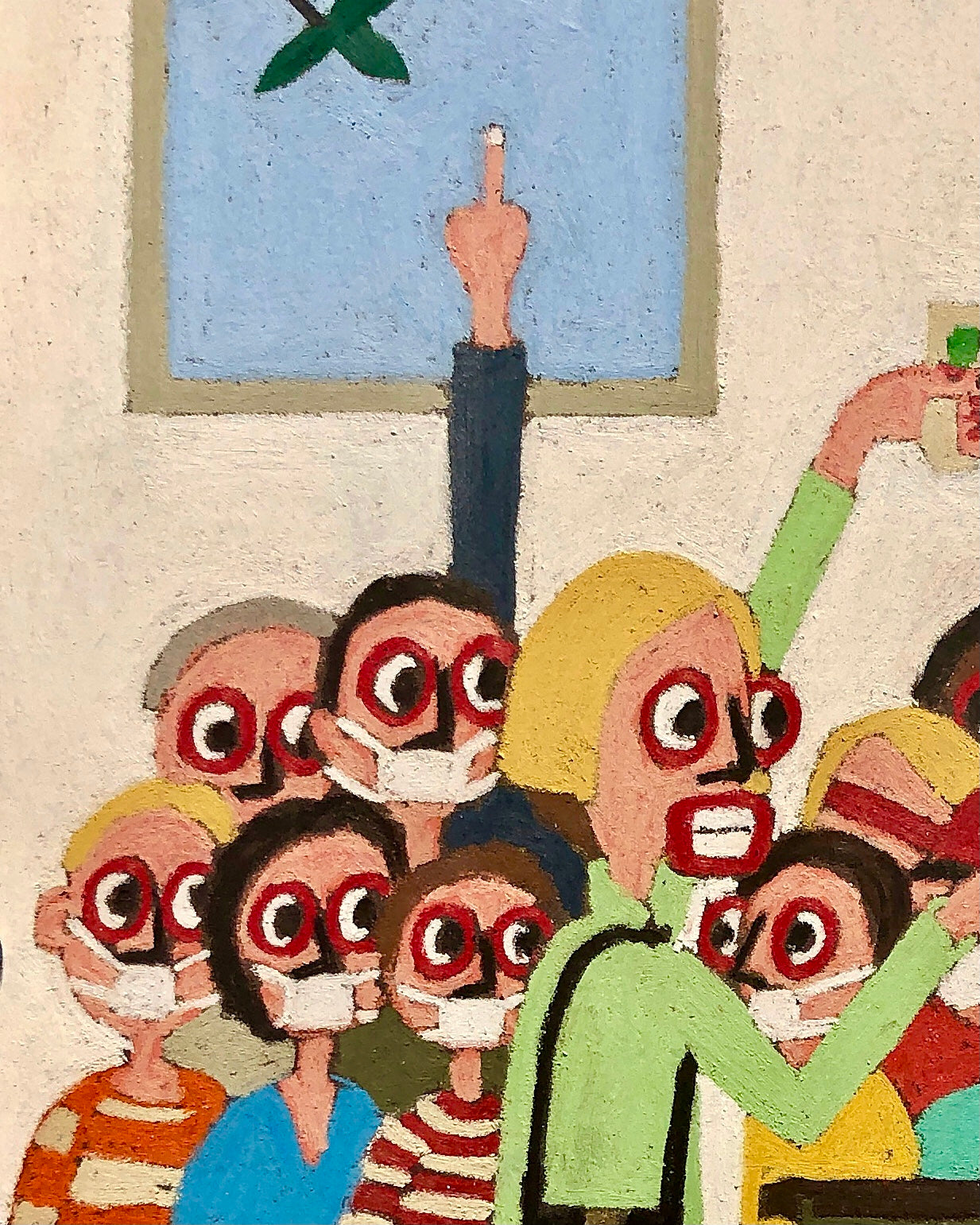 Soft pastel and pastel colored pencil on industrial grade sanded paper.
