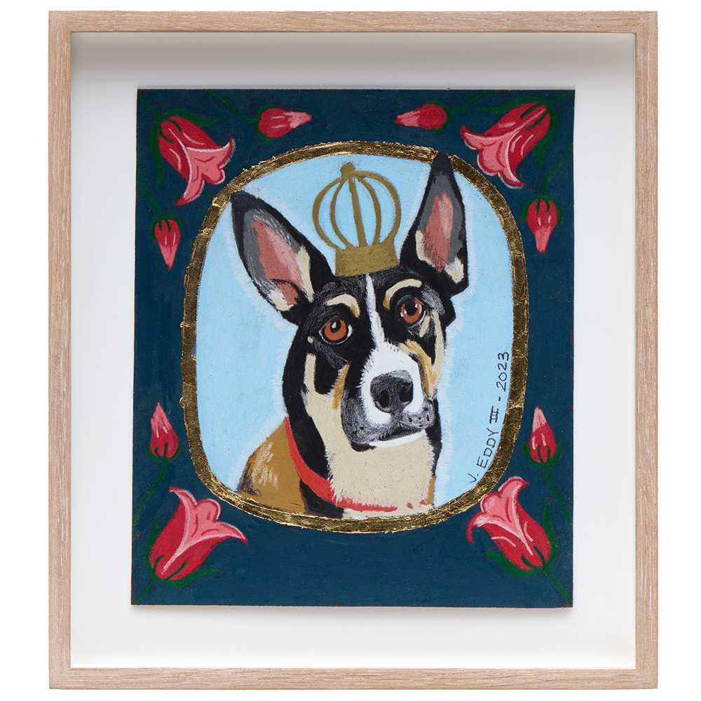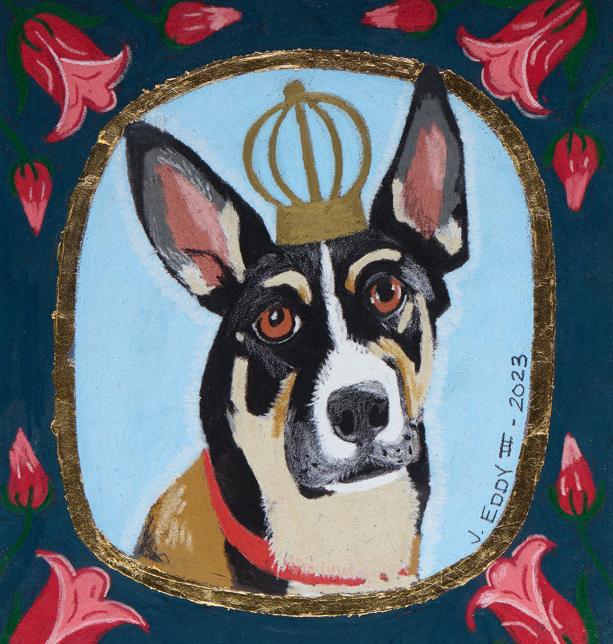 Soft pastel, pastel colored pencil and gold leaf on industrial grade sanded paper.