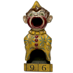A vintage Mexican carnival ball toss in the form of a clown. Hand carved wood and paper mache with the original polychrome painted surface. Puebla, Mexico. Circa 1940.